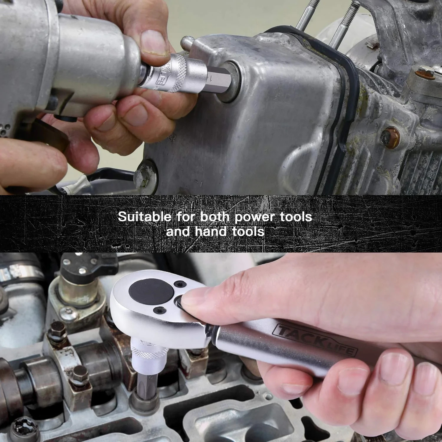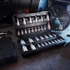 Durability : drop-forged, heat-treated S2 steel bit set that will last longer than any others in its class. Torque strength: high strength chrome vanadium steel sockets provide superior torque for greater turning power with mirror chrome finish for corrosion resistance. Precision bits: Precisely and automatically machined bit tips to ensure accurate size, chamfered bit ends insert smoothly into fasteners and protect both bits and fasteners from damaged edges. 33 pieces included: 16-piece Torx star bit sockets: 1/4 inch T7-T8-T10-T15-T20-T25-T27-T30-T35; 3/8 inch torx-T40-T45-T47-T50-T55; 1/2 inch T60-T70; 16-piece hex bit sockets included: 1/4 inch 2-2-2.2.2 5-3-4. -5-5.5-6-6.5 mm; 3/8" 7-8-9-10-12 mm; 1/2" 14-15-17-19 mm. Quality assurance: Meets and exceeds ANSI standards. Product highlights S2 alloy steel bits All our bits are made of high quality S2 steel, which makes them harder and more durable. Secure hold Our Cr-V steel base locks securely onto your ratchet handle and turns even the toughest fastenings Stay organized and clutter free Our socket set comes in a blow-molded case. Your socket wrenches organized. The sizes are engraved on both the case and the inserts. Engraved on sockets so you never have to figure out what size you have again.