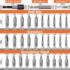 Warm Tips: Please drill a hole first when the break screw surface is smooth. Otherwise the drill bit will slip. Must be vertical and low speed when drilling, reverse use this bit, drill the first hole deeper will easier to take out. It is bettert to use electric hand drill, instead of hammer drill mode! Must be low speed during use! High Quality Hard Material - Made from hard steel, super hardness and long service life. Multiple Sizes - 33 pack damaged screw extractor set has different sizes of Drills and extractors, which provide multiple choices. Magnetic Extension Bit Holder - The upgraded magnetism bit holder can prevent tips from falling, fit all standard electric drills. Safe Storage And Portable Storage Box - ADP, bit holder, drills and extractors are have their slots. Stored neatly and orderly in a 4x5x1 inch box, wery convenient to carry. Good Helper For Most Damaged Screws - The extractor bit set is designed for troublesome stuck screws and bolts. Suitable for all bolts, machine screws, lag bolts, wood screws, hex bolts, sheet metal screws and other screws. How To Use The Bolt Extractor Set? Please note first: the size of #6 - #10 needs to be installed in the socket adapter first, and then attach it to the extension bit holder (size #1 - #5 can be attached to the extension bit holder directly). 1. Install drill (Dr) bit to drill a hole in broken screws. 2. Change the extract (Ex) bit with same size. 3. Use the drill bit backwards to get out the broken bit. Screwdriver Bits Model: Phillips screw: PH0, PH1, PH2, PH3 Slotted screw:4.0, 5.0, 6.0 Torx screw:T15, T20, T25 Package Included: 20 damaged screw extractor(Ex#1 - #10, Dr#1 - #10) 10 screwdriver Bits 1 Socket Extension Bit Holder 1 Extension Adapter 1 Adapter High Quality Material --- Screw extractor set is made of high speed steel, high hardness, durable and has a long service life. Easy to remove damaged screws. ⚠️NOTE: Install on an electric hand drill, not a hammer drill, at low speed. Easy to Use --- Stripped screw remover is can remove in one step. First choose a rotor that is smaller than the damaged screw, turn out a clean hole, then choose an extraction rotor of the same size as you are removing the damaged screw. Our Guarantee & Package Inclusion --- If you are not satisfied with the extractor set you received, please contact us within 45 days for a return. You will receive 10 drill bit set (Dr#1-#10), 10 screw extractors (Ex#1-#10), 10 screwdriver bits, complete with drill holder and adapter socket. Versatile --- Stripped screw extractor set suitable for most types of screws such as socket head cap bolts, lag head screws, wood screws, hex head screws, machine screws, sheet metal screws, lag head bolts, hex head bolts, etc. Portable & Perfect Gift --- Bolt extractor set size :3.9 x 5.07 x 1 inches, and quality carrying case make sure you don't lose one! Great birthday gift, Father's Day gift for dads, husbands, and crafters.