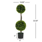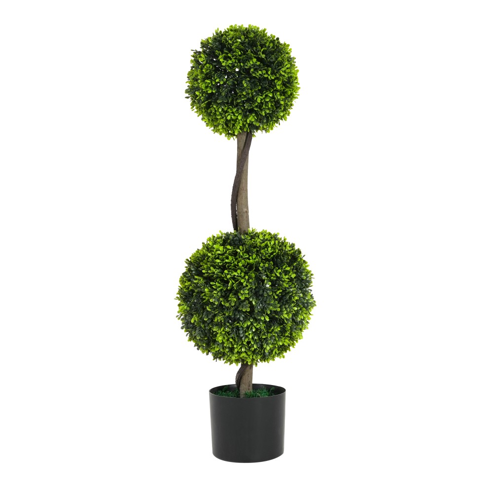 Elevate Your Space with Timeless Greenery – No Hassle, All Charm! Introducing our Set of 2 Artificial Topiary Boxwood Double Ball Trees – the ultimate blend of classic elegance and low-maintenance convenience, designed to transform any indoor or entryway decor with lush, year-round greenery. Crafted with meticulous attention to detail, these 33.5-inch tall topiaries bring a tropical vibe and natural flourish to your home without the mess, watering, or upkeep of real plants. Key Features That Make This Set a Must-Have: ✅ Iconic Topiary Design : A beloved entrance staple, these boxwood double ball trees boast vibrant, lifelike foliage that adds a touch of sophistication to foyers, living rooms, patios, or office spaces. Their rich green hue and sculpted shape infuse any area with fresh, inviting energy – perfect for welcoming guests or elevating your daily surroundings. ✅ Pre-Potted & Ready to Display : Each tree comes pre-planted in a sleek black plastic pot, so you can enjoy instant decor magic right out of the box. No assembly required! Simply place them as-is, or nest the pots in your favorite decorative basket/planter to seamlessly complement your existing decor – from modern minimalism to cozy cottage styles. ✅ Effortless Maintenance, Endless Beauty : Say goodbye to wilting leaves, pruning, or sunlight needs! Made with high-quality plastic foliage and a flexible iron frame, these faux plants retain their lush appearance year after year. Bend and shape the branches to your liking for a customized look that suits your space perfectly. ✅ Perfectly Sized for Versatility : Measuring 10" W x 10" D x 33.5" H per tree, this set strikes the ideal balance between presence and practicality. Whether flanking your front door, accenting a mantel, or brightening a corner, these topiaries transform empty spaces into eye-catching focal points with minimal effort. ✅ Set of 2 for Symmetrical Style : Double the impact with two identical trees – ideal for creating balanced, cohesive decor in entryways, on either side of a fireplace, or as matching accents in open-concept rooms. Their uniform design ensures a polished look that ties your space together beautifully. Product Specifications: Material : Durable plastic foliage, wood accents, flexible iron frame, and sturdy black plastic pot Individual Tree Dimensions : 10.00" (W) x 10.00" (D) x 33.50" (H) Individual Tree Weight : 6.84 lbs Packaging Dimensions : 42.00" (L) x 14.00" (W) x 9.75" (H) Total Shipping Weight : 18.63 lbs Shop with Confidence – Premium Assurance Included! We stand behind the quality of our artificial topiary trees with a 1-Year Manufacturer’s Warranty – covering any defects in materials or craftsmanship. Plus, enjoy a 30-Day Free Return & Exchange Policy – if you’re not completely satisfied with your purchase, simply return it within 30 days for a full refund or replacement, no questions asked. Why Choose Our Artificial Boxwood Topiaries? More than just decor, these plants offer the beauty of real greenery without the commitment. Their mess-free, long-lasting design makes them perfect for busy homeowners, renters, or anyone who wants to add life to their space without the upkeep. With lifelike leaves and a versatile design, they’re sure to enliven kitchens, bedrooms, porches, or commercial spaces – bringing a fresh, vibrant touch wherever they’re placed. Add instant charm and enduring style to your home – order your Set of 2 34'' Artificial Topiary Boxwood Trees today!