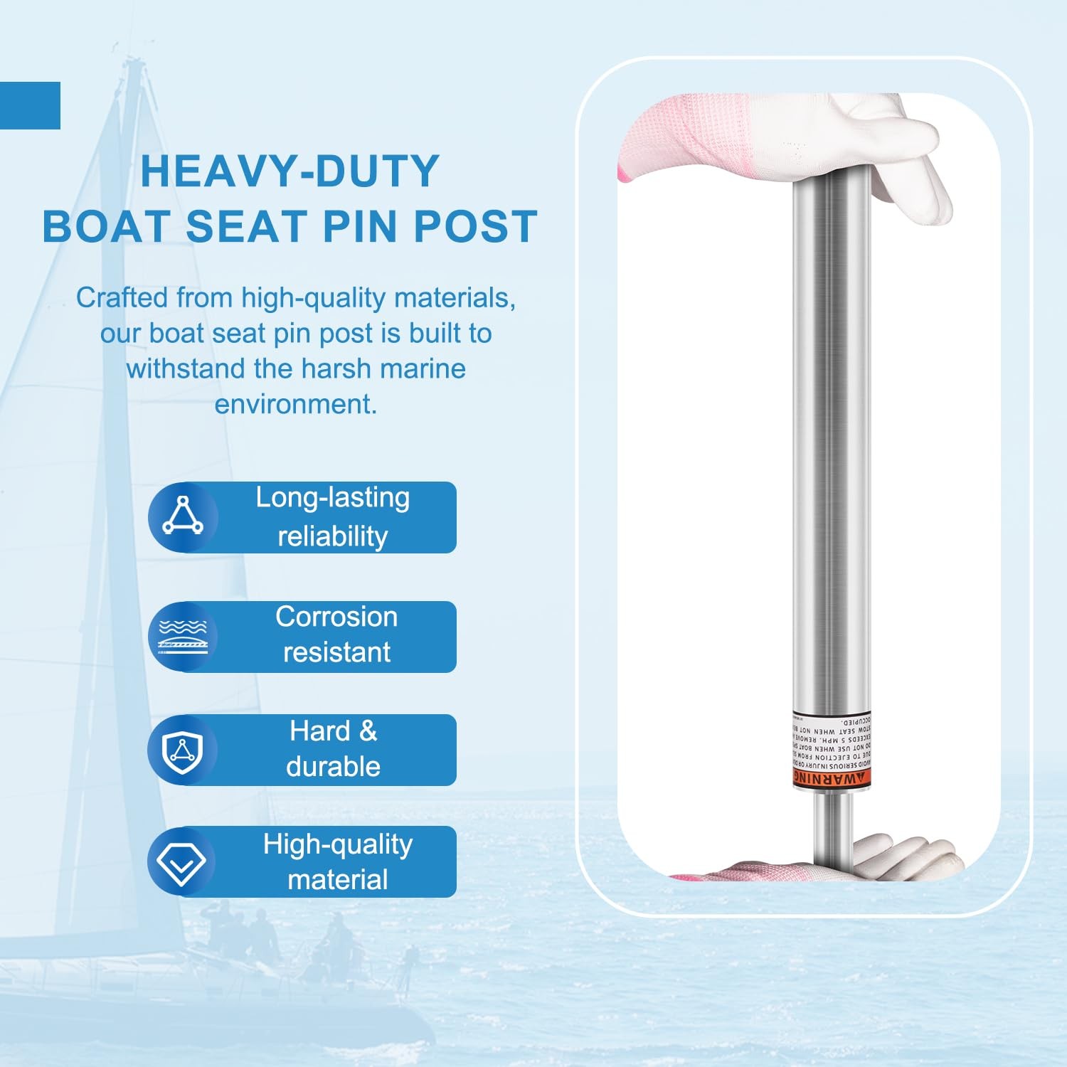 3/4" Boat Seat Pedestal Post Heavy-Duty Marine-Grade Locking Pin #SP-2134(13IN) Features: Extremely Versatile: This SP-2134 Lock-in Boat Seat Pin Post features with 13" height, 1.5" exterior diameter, fits all 3/4 inch pin-type bases and most standard 7" x 7" marine boat seats base pedestal mount, such as Pontoon Boats, Bass Boats, Fishing Boats, Cruising Boats, Travelling Boats, Jon Boats, Round Boats, Deck, Dock, etc. It can be also combined with other boat seats and bases to meet you boating requirements. Jaga-tools In Search of Excellence! 3/4" Boat Seat Pedestal Post Heavy-Duty Marine-Grade Locking Pin #SP-2134(13IN) 3/4" Boat Seat Pedestal Post Heavy-Duty Marine-Grade Locking Pin #SP-2134(13IN) Features: Extremely Versatile: This SP-2134 Lock-in Boat Seat Pin Post features with 13" height, 1.5" exterior diameter, fits all 3/4 inch pin-type bases and most standard 7" x 7" marine boat seats base pedestal mount, such as Pontoon Boats, Bass Boats, Fishing Boats, Cruising Boats, Travelling Boats, Jon Boats, Round Boats, Deck, Dock, etc. It can be also combined with other boat seats and bases to meet you boating requirements. High Performance: This 3/4" boat seat mount pole perfectly fits in mounting holes and boat seat extension post pole, specially designed to add new seats and replace the existing seat system, helps you easily install additional boat seating, also perfectly replace the old boat seat pedestal pole in boat seats, providing you with an optimal boating seating solution for the best use of your boat. Optimal Design: Features Slotted Design and Smooth 360 Degree Swivel with good load bearing capacity and perfect fit holes, prevents accidental detachment and separation for boat seat pedestal mount, 3/4" boat seat extension post and base. The non-threaded steel pin use 3/4" pin-type mounting and tight fit nylon bushing for secure installation. Comfort and Convenient: This Lock-in Boat Seat Extension Post Pin Pole offers ideal seat height for comfortable sitting position to reduce fatigue, effectively improves your overall boat travelling or fishing experience, also makes operate the foot pedal trolling motor more safe and easy. Built-to-Last: The Marine Boat Seat Pedestal Base Post Pole is made from top quality aluminum alloy with non-threaded steel pin for solid construction, high strength, prevent corrosion and rust, wear and impact resistance, can withstand all harsh marine conditions. High precision and hardness ensure long-term reliable service. 100% Satisfaction Guarantee: If you're not satisfied with this SP-2134 Marine Boat Seat Pedestal Base Post for Mounting Boat Seat, simply return it for getting refund in 30 days. While you have any questions about our products, please feel free to contact us and we will provide the best service. Always buy confidently in our store! This Boat Seat Post is matched with all 3/4 inch pin-type bases and most standard 7" x 7" boat seats base pedestal mount, ideal to mount seat for Pontoon Boats, Bass Boats, Fishing Boats, Cruising Boats, Travelling Boats, Jon Boats, Round Boats and other watercrafts. The boat seat mount pole perfectly fits in mounting holes and boat seat extension post pole, designed to easily install additional boat seating or replace the old boat seat pedestal pole in boat seats, providing you with an optimal boating seat solution. The safe boat seat post perfect fit for adding seats on travelling or fishing, pontoon or cruising boats. Its slotted design, smooth swivel design with good load bearing capacity and perfect fit holes to prevent accidental separation of seat mounting seat, post and base. This Lock-in Boat Seat Extension Post Pin Pole offers ideal and convenient seat height for comfortable sitting position to reduce fatigue, effectively improves your overall boat travelling or fishing experience on the water, also makes operate the foot pedal trolling motor more safe and easy. Item Specifics Brand JT-Motor Type Boat Seat Pin Post Fitment for Pontoon, Fishing & Bass Boats Manufacturer Part Number SP-2134 Material Alloy Steel Manufacturer Warranty 1 Year Features 13IN, 3/4" Lock'N-Pin Color Silver Number of pieces 1 Payment Returns Jaga-tools In Search of Excellence! DESCRIPTION PAYMENT SHIPPING RETURN POLICY 3/4" Boat Seat Pedestal Post Heavy-Duty Marine-Grade Locking Pin #SP-2134(13IN) 3/4" Boat Seat Pedestal Post Heavy-Duty Marine-Grade Locking Pin #SP-2134(13IN) Features: Extremely Versatile: This SP-2134 Lock-in Boat Seat Pin Post features with 13" height, 1.5" exterior diameter, fits all 3/4 inch pin-type bases and most standard 7" x 7" marine boat seats base pedestal mount, such as Pontoon Boats, Bass Boats, Fishing Boats, Cruising Boats, Travelling Boats, Jon Boats, Round Boats, Deck, Dock, etc. It can be also combined with other boat seats and bases to meet you boating requirements. High Performance: This 3/4" boat seat mount pole perfectly fits in mounting holes and boat seat extension post pole, specially designed to add new seats and replace the existing seat system, helps you easily install additional boat seating, also perfectly replace the old boat seat pedestal pole in boat seats, providing you with an optimal boating seating solution for the best use of your boat. Optimal Design: Features Slotted Design and Smooth 360 Degree Swivel with good load bearing capacity and perfect fit holes, prevents accidental detachment and separation for boat seat pedestal mount, 3/4" boat seat extension post and base. The non-threaded steel pin use 3/4" pin-type mounting and tight fit nylon bushing for secure installation. Comfort and Convenient: This Lock-in Boat Seat Extension Post Pin Pole offers ideal seat height for comfortable sitting position to reduce fatigue, effectively improves your overall boat travelling or fishing experience, also makes operate the foot pedal trolling motor more safe and easy. Built-to-Last: The Marine Boat Seat Pedestal Base Post Pole is made from top quality aluminum alloy with 