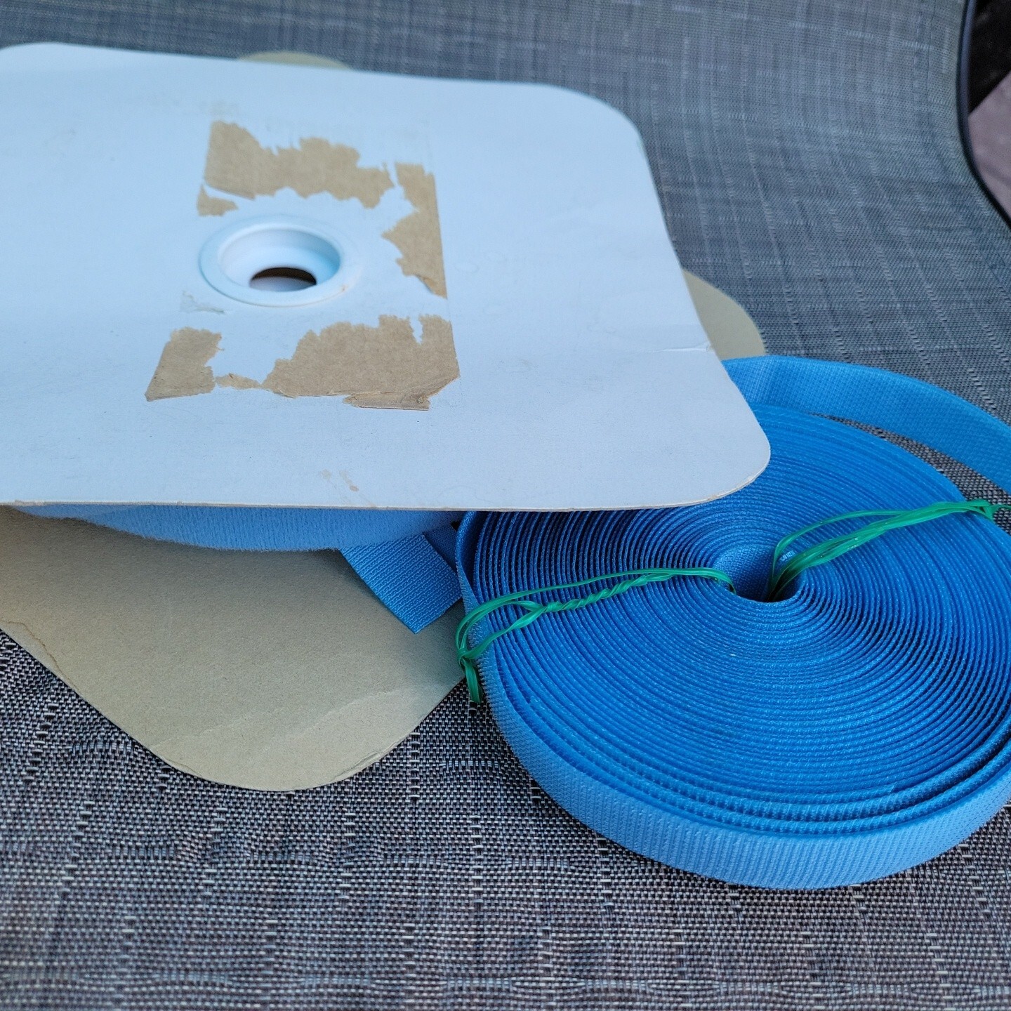 For sale is a batch of hook and loop tape (1 roll hook, l roll loop). It is 3/4" wide. Did not unroll it to measure but "guestimate" that each roll is about 25". Light blue color
