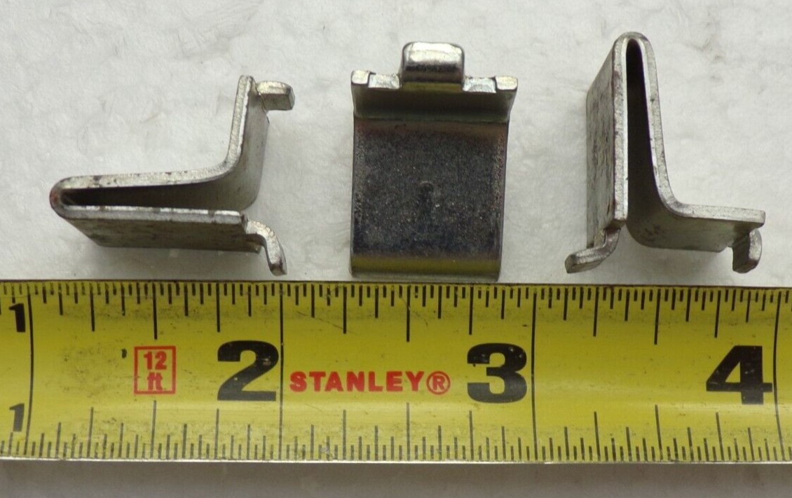 34 KNAPE VOGT METAL WALL HANGING SHELF CLIPS These items are about 7/8 x 7/8 x 5/8 inches. These have a silver tone color to them. This lot weighs 10.6 ounces unpacked. This lot is in u sed condition with some rust corrosion, paint residue, scratches, stains, stored in a loving smoke free home. We will always combine shipping on all items won by the same bidder on the same date & reduce the shipping fee!