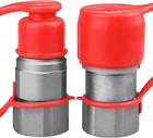 The flat faced hydraulic quick connect couplers with 1/2???Body + 3/4" NPT Thread,impoved design high flow performance and maximum service life The universal hydraulic quick connect-disconnect coupler interchangeable with other ISO 16028 standard hydraulic couplings with most models of skid steers loaders including Bobcat Case / New Holland, Kubota. Non-spill flush face valves minimize fluid losses,with 5076 PSI Rating; Max Flow: 23.78 GPM Made by harden steel construction with zinc nickel plating for superior corrosion resistance ,and one hand push-to-connect operation Flush face valve design minimizes fluid loss and air inclusion,locking sleeve to prevent accidental disconnection 3/4" NPT Flat Face Hydraulic Quick Connect Coupler Set w/Dust Caps,1/2???Body+ 3/4" NPT Thread Interchangeable with: Dixon HT Series: Male-HT4F6 Female-4HTF6 Tomco FE Series: Male-EP4-31 Female-EC4-31 Snap Tite 74 Series: Male-74N8-12F Female-74C8-12F Safeway FFE49 Series: Male-FFE491-6 Female-FFE495-6 Stucchi FIRG Series: Male-800801009 Female-800801008 Parker FE Series: Male-FEM-502-12FP Female-FEM-501-12FP Faster FFH Series: Male-FFH08 34NPT M Female-FFH08 34NPT F Eaton Aeroquip FD89 Series: Male-FD89-1002-12-08 Female-FD89-1001-12-08 DNP PLT4 Series: Male-FF-HPG-08-12N-NPT Female-FF-HPG-08-12C-NPT Features:5076 PSI Rating; Max Flow: 23.78 GPM Applications: Used in the agriculture, construction, logging industries etc,skid loader attachment,hydraulic tools,Agricultural implements,equipment attachments, drain lines,constructionindustrial hydraulic lines Made by harden steel construction with zinc nickel plating for superior corrosion resistance ,and one hand push-to-connect operation