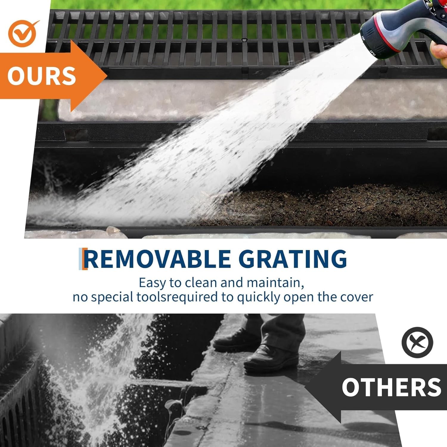 3/4/5/6 Pack Drainage Trench Driveway Channel Drain Kit Plastic Grate 5.9"x5.1" About this item Slim-Profile Drain Channel Kit:This low-profile drain system measures 5.9" W x 5.1" H x 39.4" L per channel. It provides safe, efficient surface water management for driveways, patios, pool decks, garden pathways, commercial walkways, and light industrial areas. The built-in anti-flotation ribs ensure stability in concrete without needing stakes. Modular & Tool-Free Installation:Extend your run easily with an interlocking design that connects channels tightly. The detachable grate installs and removes by hand—no screws, bolts, or tools required—making cleaning and maintenance quick and hassle-free. (Tip: Use adhesive at joints for a fully waterproof seal.) Flexible Multi-Outlet Design:Each channel includes a built-in bottom outlet in two sizes (3.1” or 3.6”) and a 2.2” side outlet, giving you connection flexibility without extra fittings. The 3.1” outlet fits standard 3” pipes directly, simplifying your plumbing setup. Durable HDPE Construction, A125 Rated:Made from high-density polyethylene (HDPE) for long-lasting performance, these drains feature a smooth interior that accelerates water flow and resists debris buildup. With an A125 load rating, they reliably handle pedestrian and light vehicle traffic. Complete 6-Piece Drainage Kit:Everything you need is included: six drainage channels with integrated outlets, six plastic grates, and six end caps. Simply drill outlet holes as needed, connect your piping, and use sealant for a watertight installation—no additional connectors required. Payment Delivery details Returns details Feedback Payment We accept Payoneer only. All major credit cards are accepted through secure payment processor PayPal. Payment must be received within 7 business days of auction closing. If you have bought multiple items from me, you can send me one payment for all the items instead of paying for them individually. When you click the Pay Now button, eBay will automatically determine if there are other items you have won or purchased from me and will combine them for your review. NOTE: Import duties, taxes and chargers are not included in the item price or shipping charges. These charges are the buyer's responsibility. Please check with your country's customs office to determine what these additional costs will be prior to bidding buying. Delivery details 1. We will delivery out at the handing time when we receive the payment. 2. The delivery time is 3-5 business days to US by usually time.The parcel maybe delay 1-2day of the weekend.Due to the bad weather,Holidays,Hot Season ect.the parcel maybe delay,If you have any problems,mssage us,we will try our best to solve it. 3. We ship to your eBay address. Please make sure your eBay address is correct before you pay. 4. If you want to change the shipping address,message us before our send out. 5. We cannot deliver your order if your state is PR. Returns details 1. If you donot receive the items at the delivery time,the parcel has broken/missing,Please message us before you open case/return,we will try our best to solve it. 2. We offer a 30 day return policy from checkout winning date. 3. An RMA number is required for all returns. Message us for return instructions. Items Returned without a RMA number will not be processed. 4. Items defective upon receipt must be packaged in their retail packaging as if new and returned with a detailed description of the problem. 5. Return shipping fees are not refundable. We reserve the right to decline any returns if the above guidelines are not followed. Feedback If you are not satisfied with the item for any reason, please do not quick to leave negative/neutral feedback even open request and case without any communication with us. We devote ourselves making EVERY CUSTOMER in 100% Satisfactory and resolve any problem. Thank you for your understanding and recognition,we are always leave positive feedback to all our customers. Reply: All replies will be sent to your email box, if you do not get response within 24 hours (Sat. & Sun. excluded) please check your eBay My Messages in case that our emails will be filtered automatically by your settings. Brand Unbranded Material HDPE