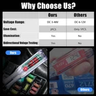 Features: 1.LED Digital Display: Accurate Reading Power Circuit Probe Kit is designed with LED digital voltage display, which can read the voltage accurately. Bidirectional current and voltage test mode, the alligator clip can be connected to the negative pole or the positive pole to ground, the red light means the positive pole, and the green light means the negative pole. Compared to LCDs, LED lights are not affected by the brightness of the light and can be read accurately in day or dark areas. 2. Negative clip protection: Equipped with pure copper clips and insulating protective cover, which can better clamp the body and screws, insulating protection against electric shock. The circuit board has line protection function, which is safer and more resistant to burning. 3. Widely used: This professional automotive heavy duty circuit test light is designed to test 3-48V DC voltage. Can be used to detect power, ground, and find shorts and breaks in wires. Quickly check car headlights, taillights, turn signal circuits, faulty sockets, connections, fuses, broken wires, and more. 4. High quality product: The handle of the DC circuit tester is made of AS plastic, hardened and tempered carbon steel probe is chrome plated. Sharp steel probe easily pierces wire insulation to inspect circuits Specification: Measuring voltage: DC 3-48V Product length: 190mm/7.4 inches Digital display: with LED voltage display Product List: 1 or 2*Voltage test pen On Oct 13, 2024 at 18:24:33 PDT, seller added the following information: