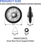 349241T Dryer Drum Roller Kit Replacement Compatible with Whirlpool Kenmore Estate Roper Dryers - Pack of 2 Product Details Manufacturer: KitFit Part Number: 349241T Item Weight: 4.2 ounces Product Dimensions: 5.1 x 6.3 x 1.2 inches Country of Origin: China Item model number: 349241T Included Components: Dryer Drum Roller Batteries Required?: No 【Package Includes】The 349241T Drum Support Rollers includes 2 x 349241T dryer drum Rollers, 4 x tri-rings, 2 x clips. The dryer roller replacement kit is made of premium quality material, and our dryer parts replacement proves extremely durable and highly corrosion-resistant under continuous high-temperature exposure tests. 【Functionality】The 349241T dryer rear drum support roller kit is a maintenance kit designed to fit a variety of dryer models from different brands. 349241T Drum Support Rollers is used to support and ensure the smooth rotation of the dryer's drum. 【Resolve Symptoms】This Whirlpool dryer roller repair kit is commonly used to fix issues such as noise during operation, the drum not turning, or the dryer not functioning properly.