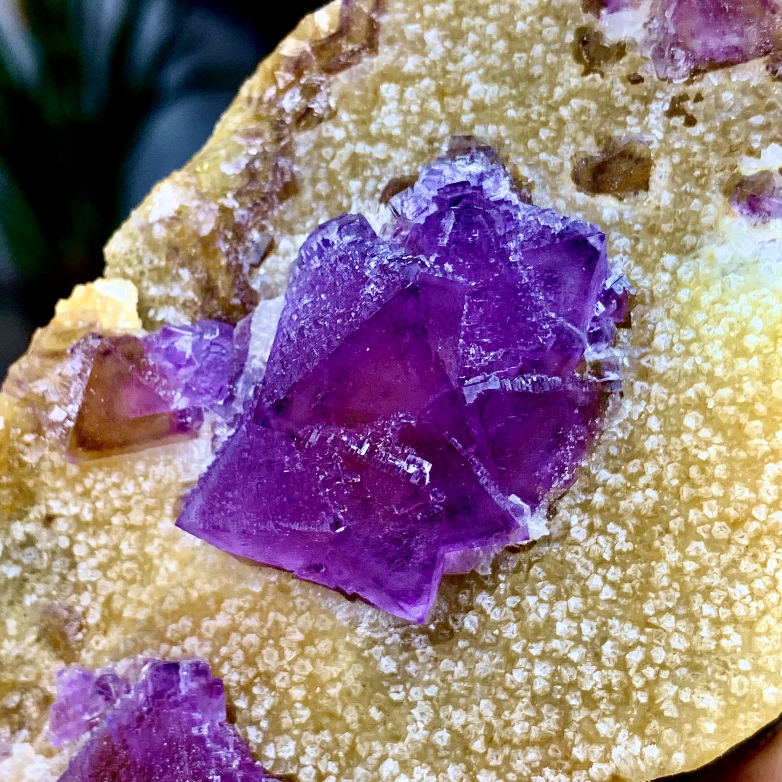 $ 136.89Shiny Golden Cuboid Barite Crystal on Purple Spherical Fluorite Base