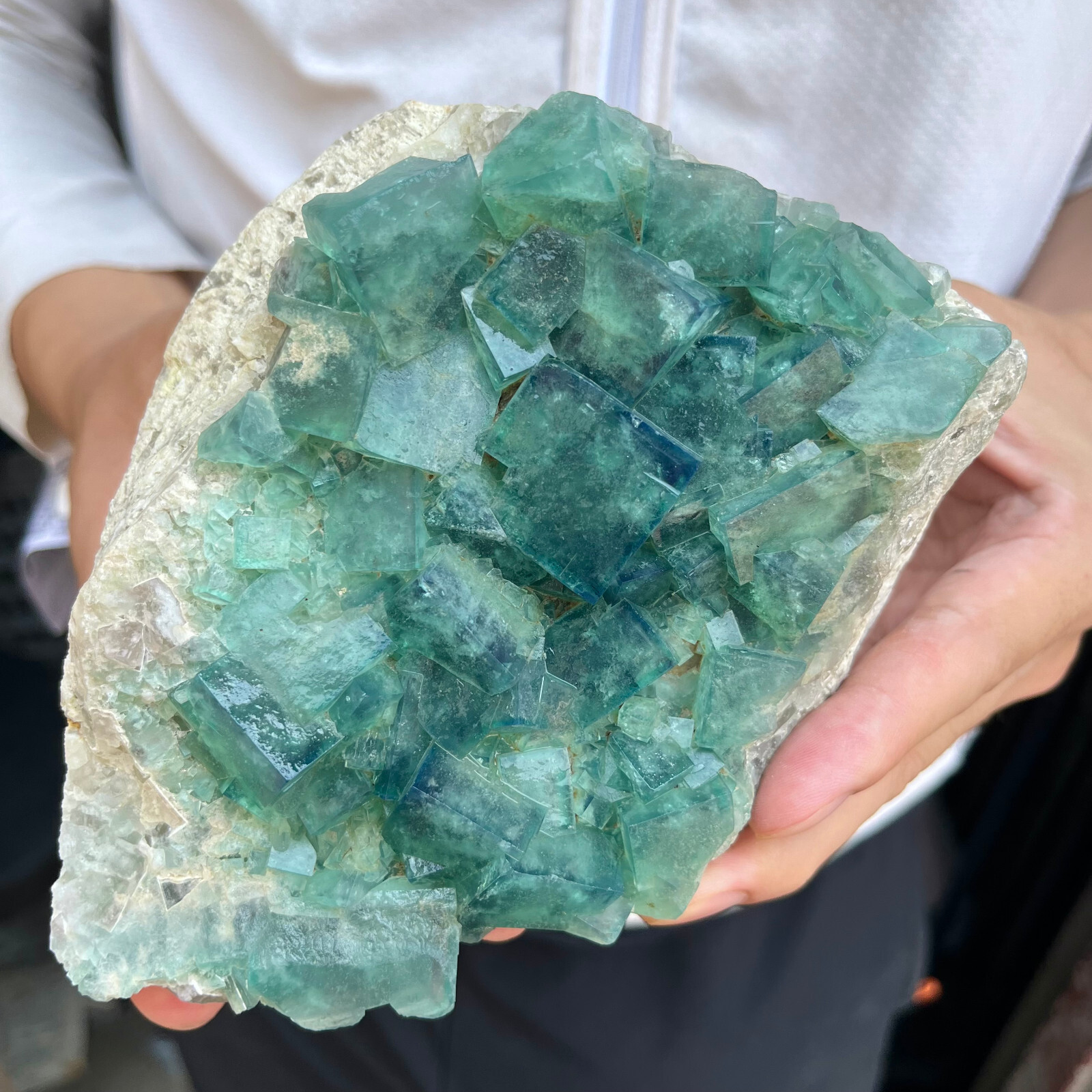 Amazing blue green hues in the fluorite. Item got here super quickly and it was wrapped completely in bubble wrap and tape. It looks exactly like the picture. It’s a solid chonk of a rock with interesting white flecks of crystal on the bottom. A+ transaction!!!