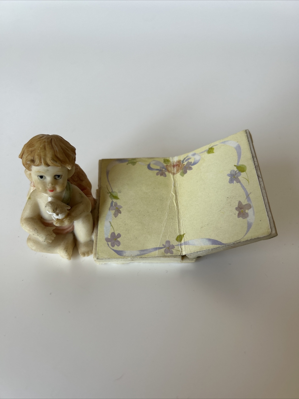 Girl Angel Figurine Lareaux Poly Resin with Folding Album 3 1/2" L 2 1/2" H. Condition is Used. Shipped with USPS First Class. (2)