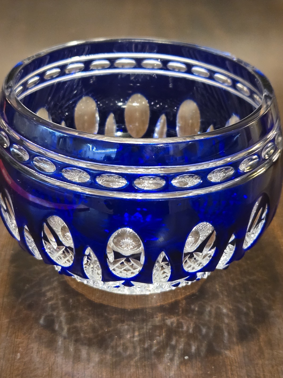 3.5" Round Waterford Crystal Cut To Clear Bowl Votive Clarendon Cobalt Blue