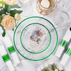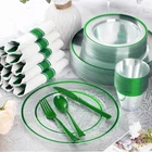 SAFE MATERIALS - Crafted from food-grade plastic, this set of clear green plastic plates and utensils is BPA-free. If you want to reuse the plastic utensils set, simply wash them with water, and they won't retain any typical smells or tastes in the food. The disposable napkins wrapped around the tableware add convenience. STURDY & DURABLE - These green dinner plates, dessert cups, knives, forks, and spoons are made from heavy-duty plastic, ensuring resistance to breaking, bending, and snapping. These fancy plastic plates can handle hot, cold, and wet food without leaking or spilling, making them suitable for daily use. Goodluck plastic cutlery for a delightful dining experience. ELEGANT DESIGN - Elevate your parties with these disposable dinnerware sets featuring a delicate green trim decorative pattern. They add an element of elegance and luxury to your gatherings with their premium quality. Disposable plates and cutlery can be tossed in the trash without the need for cleaning after use, saving time. SUITABLE FOR EVERY OCCASION - The plates set is perfect for any event you're hosting. These elegant green dessert plates, green tableware, and napkin sets are ideal for various occasions, including everyday use, St Patrick's Day Party, birthday parties, weddings, holidays, anniversarie, baby showers, fancy dinners, Thanksgiving, Halloween, and Christmas dinners. Make entertaining a breeze today! WHAT YOU GET - Receive a complete set with 350 pieces of green plastic plates for 50 guests, including 50 10.25" disposable dinner plates, 50 7.5" salad plates, 50 paper napkins, 50 9oz cups, 50 knives, 50 forks, and 50 spoons. Note: These party plates are not recommended for use in the microwave or dishwasher. Cutlery