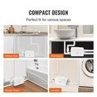 Flush All the Waste Away with Its Strong Power Looking for ways to easily and quickly dispose of wastewater? This VEVOR macerator pump provides a 23 ft high head and 6000 L/h large flow with a powerful 350W copper motor. Whether you're adding it to your bathtub, shower room, laundry, or kitchen, this sewerage pump is the one you can trust. Our macerator sewerage sump pump can better adapt to hot water applications with the oil injection design. It also improves the service life of the motor. The upflush pump has 3 water inlets connecting various devices in your bathroom or kitchen simultaneously. You can get convenient and cost-saving water disposal. Our sewer macerator pump features an antimicrobic silver ion tank with an inhibition rate of up to 99%. So you don't have to worry about odors. This macerator sewerage pump has an elbow assembly with a check valve to connect the water outlet. It helps you easily solve the problem of wastewater backflow.
