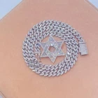 $ 7.1414K White Gold Plated 19MM Round Cut Simulated Diamond 4 Lines Cuban Link Chain