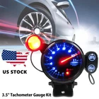 Features: 3.5" diameter, with black face, smoked lens and super bright LED background light. 0-11,000 RPM measurement, shift light RPM is adjustable. The stepping motor is sufficient for quick response of all sorts of professional motor sports. The gauge dial is invisible while the ignition switch is off. Once the ignition switch is turned on, a clear display appears by colored LED illumination. The gauge dial and the needle pointer provide high visibility. When the RPMs are exceeded, the warning LED blinks/lights up and the warning buzzer sounds. Peak memory function: the maximum RPM during driving can be stored and checked later. The gauge is clinched by using the exclusive mounting band and back base. Specifications: Color: Black + Silver Material: Aluminium Gauge Display: Blue LED Shift light: Green First and then turn Red Measurement Range: 0~11,000 RPM Powered By: 12V Switch Unit Length: Approx. 5cm / 2" Indicator Size: 7.62 * 3cm / 3 * 1.2in (L * W) Diameter: Approx. 88mm / 3.5" Gauge Weight: 137g / 4.82oz Package Size: 21.5 * 15.5 * 12.5cm / 8.46 * 6.1 * 4.92in (L * W * H) Package Weight: 681g / 24.03oz Package List: 1 * Tachometer Gauge 1 * Indicator 1 * Switch Unit 1 * Back Base 1 * Regular Position Bezel 1 * Attachment for Switch Unit 1 * Mounting Rubber 1 * Bundle of Line 2 * Pieces of Double Sided Tape 2 * Taping Screws 1 * User Manual(English) Note: About the problem of adjusting the pointer to zero:First, turn on the meter, wait for the pointer to go to the middle position, then turn off the power and turn it on again, the pointer will go to zero automatically.