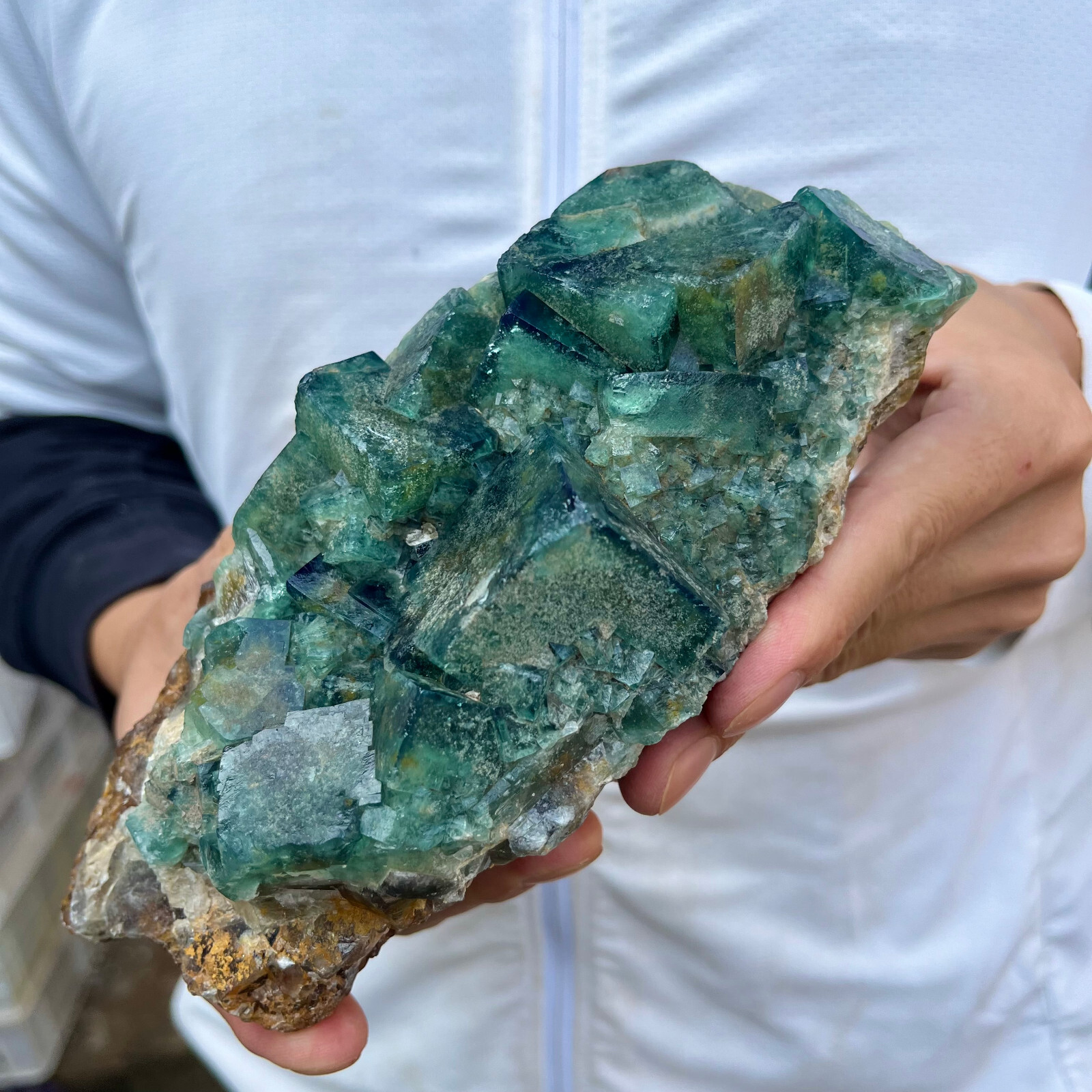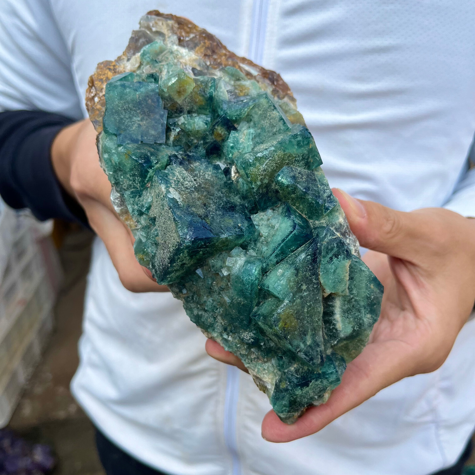 $ 16.372.4LB Natural Green Fluorite Cube Quartz Crystal Cluster Mineral Specimen