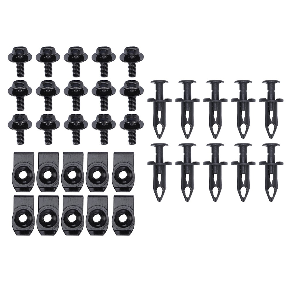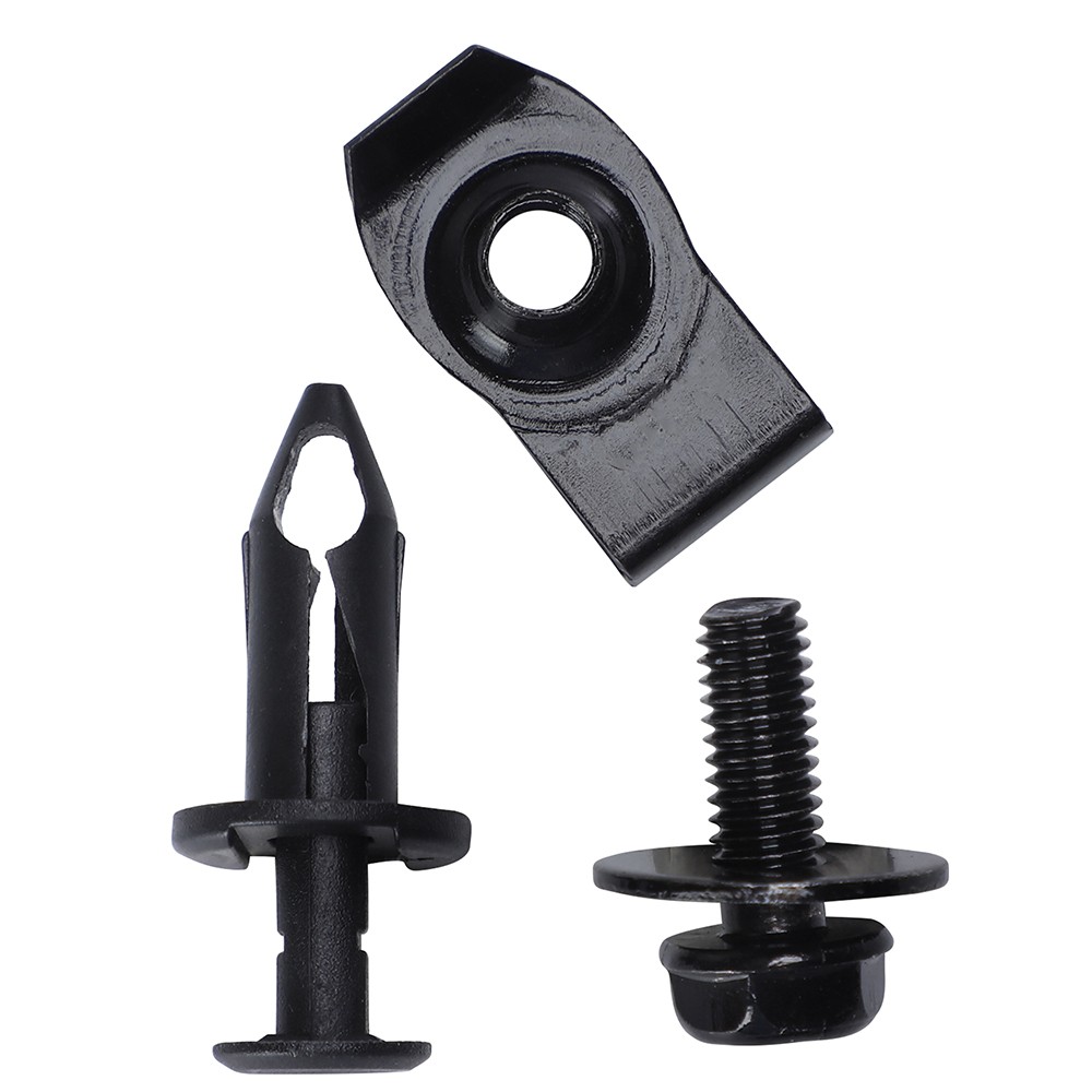 Detail Specification: Item Type: Fastener & Clip Material: metal, plastic Color: Black Size: as picture shows Please confirm model and size before ordering! Package includes: 10pcs Extruded U-nuts 15pcs Body Bolts with Built-in Fender Washer 10pcs Nylon Push Clips Feature: 1. Premium Carbon Steel & Plastic: Engine Undertray Clips Screws are made of high-quality carbon steel material, which is not easy to rust, anti-oxidation, anti-vibration, strong and wear-resistant, the screw thread are clear and smooth, and the U-shaped spring clip has good elasticity and durable. 2. Extend Engine Life: Undertray Cover Fastener as effective car body trim clips to prevent mud from splashing on the body when the car is running, not only keeps the body clean, but also protects the engine from being hit by gravel, effectively prolonging the life of the engine, it is a good choice for damaged screws replacement. 3. Easy to Use and Replace: Car trim clips are ergonomically designed for easy grip and use, push-on car retainer clips, easy and quick to install, easy to replace damaged parts, less time and effort than going to the local garage to replace the retaining clips, lightweight and saving space, easy to carry and replace in time on the go. All rights reserved. HOME PAYMENT SHIPPING ABOUT US CONTACT US Detail Specification: Item Type: Fastener & Clip Material: metal, plastic Color: Black Size: as picture shows Please confirm model and size before ordering! Package includes: 10pcs Extruded U-nuts 15pcs Body Bolts with Built-in Fender Washer 10pcs Nylon Push Clips Feature: 1. Premium Carbon Steel & Plastic: Engine Undertray Clips Screws are made of high-quality carbon steel material, which is not easy to rust, anti-oxidation, anti-vibration, strong and wear-resistant, the screw thread are clear and smooth, and the U-shaped spring clip has good elasticity and durable. 2. Extend Engine Life: Undertray Cover Fastener as effective car body trim clips to prevent mud from splashing on the body when the car is running, not only keeps the body clean, but also protects the engine from being hit by gravel, effectively prolonging the life of the engine, it is a good choice for damaged screws replacement. 3. Easy to Use and Replace: Car trim clips are ergonomically designed for easy grip and use, push-on car retainer clips, easy and quick to install, easy to replace damaged parts, less time and effort than going to the local garage to replace the retaining clips, lightweight and saving space, easy to carry and replace in time on the go. All rights reserved.
