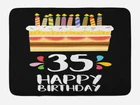 35th Birthday Bath Mat Bathroom Decor Plush Non-Slip Mat 29.5" X 17.5" Decorative bath mat with soft plush surface with anti - slip backing. Measurements: 29.5 INCHES WIDE X 17.5 INCHES LONG. This mat is very comfortable with it's soft plush surface. It has anti slip backing which is durable and long lasting. Backing will not harm your flooring. Water resistent and dries FAST. No shedding. Ideal accent item for anywhere you need a cozy step. Ideal for kitchen, bathroom, vanity, master bathroom, kids bathroom, guest suite, laundry room, spa, vacation home, hotel bathroom. These unique designs match well with various color palettes of towels, rugs, shower curtains and any other bathroom accessories. It’s a quick and luxurious way to refresh and completely change the appearance of a room without a big expense. Made from %100 polyester high quality and environmentally friendly materials. No chemicals used, No dye substance harming the health of you or your family. A perfect gift idea for your mom, dad, sister, brother, grandma, wife, husband and all other beloved ones with thousands of surprising designs. You can find a theme for everybody and every interest in our Ambesonne Collection. Colors won't fade thanks to new digital printing methods. Customized, personalized products are very popular. As manufacturers of digital printed home textiles, we follow current trends and bring you the latest home fashion. Either a gift to your family or friend, relative or boyfriend girlfriend, or to yourself, the item should be interesting and authentic. Men, women, kids, teens, boys or girls everybody will love this shower curtain. CARE INSTRUCTIONS: Machine wash on cold delicate cycle with mild detergent and water; DO NOT bleach. DO NOT place mat on a already wet surface. The digital images we display have the most accurate color possible, however due to differences in computer monitors, we cannot be responsible for variations in color between the actual product and your screen. Proudly designed & printed in the USA.