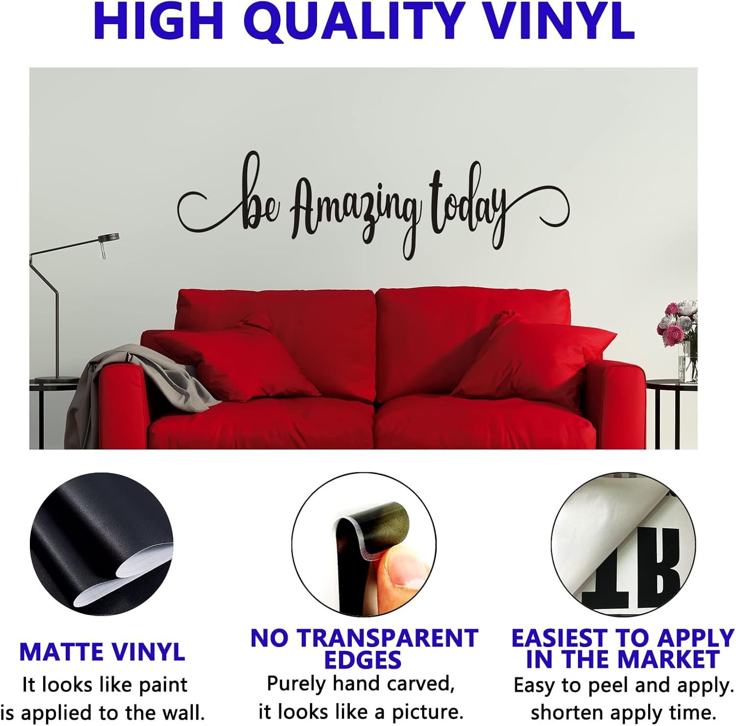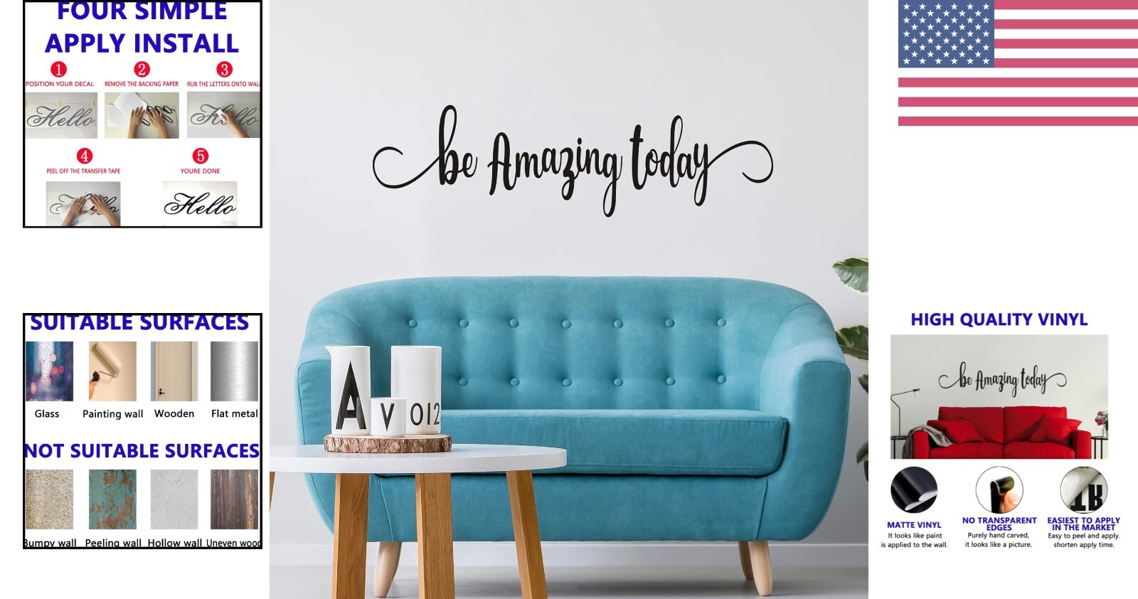 Matte Vinyl Wall Decal - Be Amazing Today 35"X9.8" for Inspiring Indoor Spaces < class="slides"> ‹ › ‹ › ‹ › ‹ › ‹ › ‹ › ‹ › Matte Vinyl Wall Decal - Be Amazing Today Size: 35" x 9.8" Create inspiring indoor spaces with our stunning wall decal that effortlessly elevates the ambiance of any room. Features: <> Dimensions perfectly sized at 35" x 9.8"—ideal for any wall space. Made of high-quality matte vinyl, providing a painted-on look. Easy to apply on any solid and smooth surfaces, allowing quick and mess-free decoration. Comes with transfer paper, ensuring effortless application. Designed to stay in place, with minimal risk of edge warping or falling off. Benefits: <> Transforms blank walls into beautiful, inspiring spaces. Encourages positivity and motivation—perfect for living rooms. Crafted with care, this handmade piece speaks to your personal style. Enhances your home decor without the hassle of traditional painting. Durable and long-lasting for of enjoyment. Why choose our Matte Vinyl Wall Decal? Looking to inspire your home environment? Our "Be Amazing Today" wall decal is not just a decoration; it is a statement of positivity and ambition. Expertly crafted from high-quality matte vinyl, this decal mimics the elegance of hand-painted art while ensuring easy application and removal. Prepare your walls by cleaning and drying the surface, extending the longevity of this stunning piece. Whether you’re crafting a family gallery or simply looking to uplift your everyday spaces, this versatile decal fits seamlessly into any design theme. Elevate your interior decor with a touch of inspiration—order your Matte Vinyl Wall Decal today! Shipping <> <> Free & Fast Shipping - We offer free shipping to most of the USA with a normal delivery time of 3-7 days. However, due to the current situation, additional delivery time (up to 3 weeks) may be required for some items. Alternative Carriers - We may use alternative carriers (e.g. USPS, FedEx, UPS, etc.) to ensure your package arrives safely and on time. Due to the use of multiple carriers, we are unable to provide a tracking number automatically. Handling Time - Orders are processed and shipped within 1-2 business days of receiving cleared payment. Shipping Restrictions - Shipping to Alaska, Hawaii, Puerto Rico, Guam, and other US territories may incur shipping charges or delivery restrictions. Please contact us before ordering, or your order can be refunded/cancelled. State Restrictions - There may be restrictions based on your state of purchase. For example, certain items may not be shipped to California due to state regulations. Contact for Tracking Updates - If you require tracking updates or have any concerns about the delivery of your order, please feel free to contact us, and we will be happy to assist you. Return <> <> 30-Day Hassle-Free Returns - We want you to be completely satisfied with your purchase. If you are not, you can return the item within 30 days of receiving it for a full refund or exchange. Easy Return Process - To start a return, simply contact us and we will provide you with a prepaid return shipping label and detailed instructions. Restocking Fee - There are no restocking fees for returns. However, the buyer is responsible for return shipping costs if the return is not due to a seller's error. Refund Processing Time - Refunds will be processed within 5 business days of receiving the returned item in its condition. Payment We accept all major credit cards, PayPal, and Apple Pay for your convenience. Your payment information is secure and encrypted to ensure a safe and seamless transaction. Please complete your payment within 3 days of purchase to avoid any delays in shipping. Feedback Your feedback is extremely important to us. We strive to provide the best products and customer service possible. If you are satisfied with your purchase, please take a moment to leave us a positive review. If you have any concerns or issues with your order, please contact us before leaving negative feedback. We are committed to resolving any problems and ensuring your satisfaction. Contact Us If you have any questions or concerns, please feel free to out to our customer support team. You can contact us through the eBay messaging system. We are available Monday to Friday, 9:00 am to 5:00 pm EST, and we will do our best to respond to your inquiry within 24 hours. Buy it now and enjoy a pleasant shopping experience! Theme: Inspirational Suitable For: Wall Features: Matt Material: Vinyl Type: Decal Subject: Space Style: Contemporary Color: Be Amazing Today Item Length: 8 in Pattern: Letter Item Weight: 2.82 Ounces
