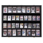 【Elegant Cards Display】 Graded Sports Card Display Case holds 36 PCS sports star cards of baseball, basketball, hockey,football, and other cards with 5.1 inches height or less. The frame outer size is 30.5in X 24.25in X 2.1in, Compartment height is 5.4 inch, Interior depth is 1.1 in. NOTE: Cards are not included. 【Sturdy Storage Design】 Cards cabinet lockable with black matte finished give a clear view of your collectible cards. Shatter Proof 92% transparency and 98% UV protection acrylic ensures your cards collectibles away from fading yellow because of overexposure in light. 2 gold plated anti-theft locks can protect your cherished sports cards memorabilia or collectibles from lost well. 【Unique Cards Display】- Trading cards case give a clear display for collectible cards more than the normall cards storage box.Compartmen lipped edge on shelves to prevent card from sliding. It display a variety of Sports star cards such as Football, Baseball, Basketball, Hockey Comic Trading Cards in home and offce. The cards display holder can display kids sport cards within height 5.1inches in boys' girls' room too. 【Sports Memorabilia】- Sports Card Display Case is great designed for Sports fans. Cards case can save everything long well from hobby collections to family heirlooms.Display them, Get those treasures out of the drawer or closet ,so your family and friends can enjoy memorial. 【Strong Package 】Considering the fragility of the storage frame, our graded card case is surrounded by foam to get a full protection.