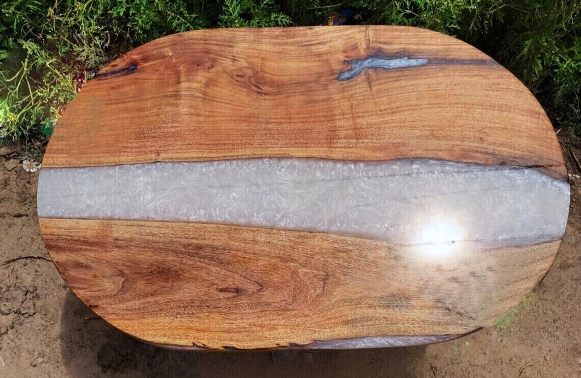 Kindly note: Any accessories, chairs, bench, and legs shown in the picture are NOT included in the given prices. If you want legs, you will need to pay an additional fee. Please contact me if you have any queries." "Note: Any customs duties and other levies in the destination country are the responsibility of the buyer." "Kindly note: Raw wood is used in its natural form and shape to make the table. The table shown in the photos has already been purchased, so the actual product may vary from the picture shown." Elevate your home decor with our exquisite Epoxy Wooden Table Top, a true masterpiece of craftsmanship. Each table top is a stunning fusion of natural wood and mesmerizing epoxy resin, creating a one-of-a-kind work of art that will become the focal point of any room. Our meticulous process begins with hand-selected, sustainably sourced wood that is skillfully cut and shaped to preserve its unique character, whether it's a rustic live edge or a sleek, modern design. The wood is then expertly sealed to ensure durability and longevity. But what truly sets our Epoxy Wooden Table Top apart is the mesmerizing epoxy resin infusion. Our artisans carefully pour and sculpt the resin to create mesmerizing rivers, waves, or abstract designs that enhance the wood's natural beauty. You can choose from a wide range of colors and patterns to suit your style and taste. The result is a seamless blend of nature and artistry, where the warmth of wood meets the contemporary allure of epoxy resin. The glossy finish not only enhances the table's aesthetics but also provides a smooth, durable surface that's easy to clean and maintain. Whether you're looking for a statement piece for your dining room, a unique coffee table, or a conversation starter in your office, our Epoxy Wooden Table Top is designed to impress. It's perfect for both classic and modern interiors, adding a touch of sophistication and elegance to your space. Each table top is handcrafted with precision and attention to detail, ensuring that you receive a high-quality piece of functional art. Plus, we offer customization options, allowing you to choose the wood species, size, and epoxy resin design that best suits your vision. Bring the beauty of nature and the allure of contemporary design into your home with our Epoxy Wooden Table Top. Experience the artistry of our process and transform your living space into a haven of style and sophistication. Upgrade your home today with a piece that's not just a table but a work of art. Explore our selection and discover the perfect Epoxy Wooden Table Top to complement your unique style.