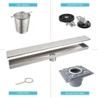 Shower Drain by EMBATHER Linear Shower Drain 36 Inch Floor Drain with Removable Quadrato Pattern Grate CUPC Certified, 304 Stainless Shower Drain Base Hair Strainer and Leveling Feet