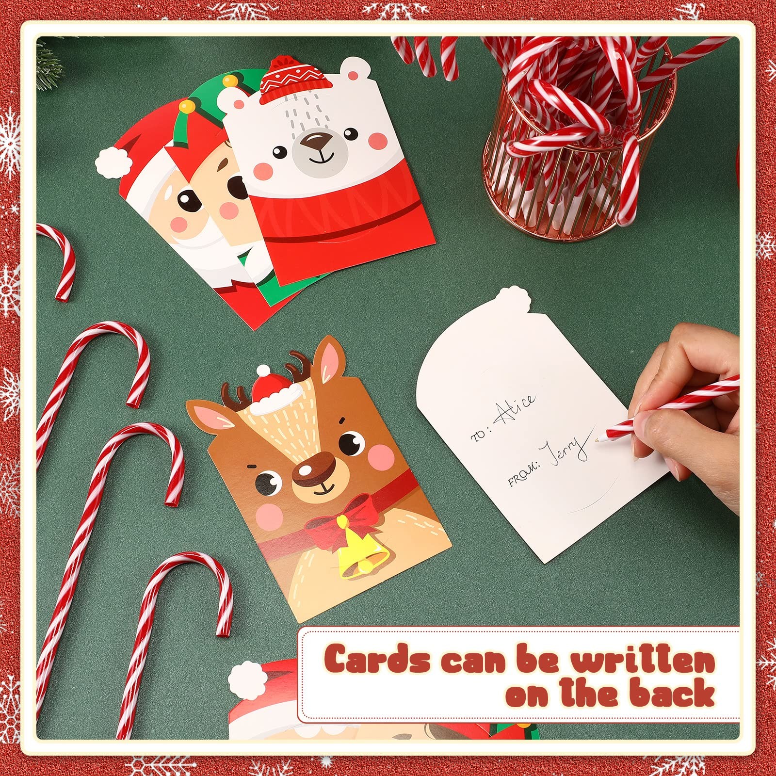 Features: Joyful atmosphere: Christmas themed animal Christmas cards and candy cane pens are nice items, with cute and interesting designs to make your life more interesting. Christmas design: Christmas candy cane pen is designed in funny and practical way. The barrel features classic Christmas colors of red and white stripes, which can add some Xmas atmosphere. Specifications: Material: Ballpoint pen: PP Christmas card: paper Color: as shown on the screen Size: The length of ballpoint pen is approx. 18.5 cm/ 7.28 inches Refill: 0.7 mm Christmas card: 12 x 8 cm/ 4.72 x 3.15 inches Package includes: 36 x Ballpoint pens 36 x Christmas cards Notes: Manual measurement, please allow slight errors on size. The color may exist a slight difference due to different screen displays. Package Include: Christmas ballpoint pens with cards include 36 crutch ballpoint pens and 36 Christmas cartoon cards, small cards with card slots, ballpoint pens can be inserted into the cards to combine Reliable Material: the length of candy cane pen is approx. 18.5 cm/ 7.28 inches; It is made of plastic material, filled with black refill, smooth writing, suitable for your daily writing, or hanging on the Christmas tree as decoration Christmas Elements: the size of Xmas cards is approx. 12 x 8 cm/ 4.72 x 3.15 inches; Designed with 6 different cute Christmas characters, including Santa Claus, penguins, reindeer, snowmen and polar bears, to bring a warm and cute Christmas atmosphere to your gift Wide Range of Application: apply these cute cane candy ballpoint pens and cute Christmas card at Christmas, where children can write their wishes to their friends to improve their social skills; Teachers and parents can apply these to prepare nice gifts for children Nice Christmas Gift: Christmas ballpoint pens and holiday cards are suitable for Christmas gift giving, Christmas stocking stuffers, gift exchange activities, school classroom prizes, Christmas parties and so on