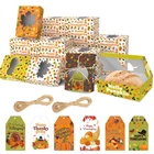 What You Will Receive?: The package contains four styles of 9 each, for a total of 36 Thanksgiving cupcake Boxes, with 36 tags and 2 bundles 65ft of hemp rope, enough to meet your various gift and party favor needs. The Perfect Size for Desserts: This product is 8x6x2.5 inches, perfect for everyday desserts such as cookies, donuts, macaroons, etc.Use it to make desserts look even more delicious. Safe and Eco-friendly Materials:Our fall dessert boxes use food grade high quality paper materials, raw materials are both environmentally friendly and durable, you can rest assured to use. Easy to Assemble and Use: The dessert box is flat cardboard before folding,and saving you the most storage space. They can be folded and assembled according to the indentation on the box when in use. Multiple Occasions Suitable: A variety of Thanksgiving themed prints are suitable for gift wrapping and can be used for party dessert packaging, baking, afternoon tea and other occasions.