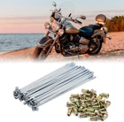 Fit for most of motorcycle. Angle: 90 degrees Wheel spoke kit includes enough spokes and nipples to rebuild your motorcycle wheel. Not only replace the spokes and nipples but upgrade them for race durability. Wheel uses a gradual continuous hammering technique that improves the oscillating load capacity. Spokes have good toughness and well anti-impact resistance, reduce the impact resistance of wheel. Product Description Description: Wheel spoke kit includes enough spokes and nipples to rebuild your motorcycle wheel. Not only replace the spokes and nipples but upgrade them for race durability. Wheel uses a gradual continuous hammering technique that improves the oscillating load capacity. Spokes have good toughness and well anti-impact resistance, reduce the impact resistance of wheel. Please allow 3-5mm error! Specification: Elbow Head Dia: 6.5mm / 0.26" Spokes Thread Dia: 3.6mm / 0.14" Spoke Shaft Diameter: 3mm/ 0.12'' Spokes Length(without Elbow): 150mm / 5.91'' Nipples Size: 14.5x9.5mm / 0.57"x0.37"(L*Max.D) Material: Metal Angle: 90 degrees Installation: According to the original arrangment of you wheel, so you can take a picture before installation. When installaing, the two adjacent spokes on the wheel drum are mounted in the first and third holes in the same direction on the rim (two spokes spaced one hole). Package Includes: 36 x Wheel Plated Spoke 36 x Nipples