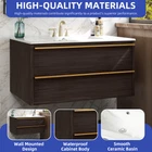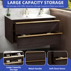 36 in Wall Mounted Floating Bathroom Vanity Sink Combo Storage Cabinet Drawers Product Description NOTE: Professional Installation would be Highly Recommended. Description: 1. Color: Black Brown + White Sink + Gold Accents 2. Cabinet Material: Particle Board, Metal 3. Sink Material: Ceramic 4. Sink Type: Basin Sink 5. Faucet Holes: 3 (Faucet not included) 6. Mounting Type: Wall-Mounted 7. Room Type: Bathroom 8. Special Design : Large Storage Drawers, Floating Effect, Hidden Handles, Scratch-Resistant Features: Generous Dual Storage Design - This 36-inch bathroom vanity offers two spacious drawers with sleek metal handles, providing ample storage for your daily essentials. Its practical design combines functionality with a modern, elegant aesthetic. Durable Pre-Drilled Ceramic Basin - The integrated ceramic sink features a smooth, scratch-resistant surface that’s easy to clean. Pre-drilled with three faucet holes (faucet not included), it ensures effortless installation and a polished finish. Compact Yet Sturdy Construction - Measuring 36.0"L x 19.0"W x 18.5"H for the cabinet and 18.9"D x 10.4"W x 6"H for the sink, this vanity supports up to 150 lbs. Crafted from high-quality MDF, it is designed to resist warping even in humid environments. High-Quality Ceramic Sink - The countertop includes a durable, 4.7-inch deep white ceramic sink with a press-type drain. Its self-cleaning glazed surface and curved design make cleaning effortless while preventing water splashes for a tidy, functional bathroom experience. Dimensions: 1. Product Dimensions: 36.0"L x 19.0"W x 18.5"H 2. Item Weight: 82.7 lbs 3. Weight Capacity: 150 lbs Package Included: 1. 1 x Bathroom Vanity Cabinet 2. 1 x Ceramic Basin 3. 1 x Installation manual Shipping 1. Normally the item will be dispatched within 1 business day if payment is cleared before 12pm PST. 2. Please verify the correct shipping address in your PayPal account before making the payment. We only dispatch the item to the address that is sent to us at the time of checkout. 3. We don't ship to Hawaii, Alaska, Puerto Rico, APO/FPO/PO Boxes. 4. We don't provide local pick-up service. 5. Normally we will use USPS, UPS, FedEx & LTL to dispatch items. Payment 1. We accept PayPal and credit card. 2. We will ship to the confirmed Paypal shipping address that is provided with the payment only. Return 1. 30 days Money Back Guarantee. 2. Please contact our customer service to receive a RMA form first if want to return the item. 3. All returned items MUST in new condition with the original package. Contact If has any problem, please contact us by sending an ebay message. Our customer service will resolve the problem as soon as possible. On Jun 9, 2024 at 23:22:52 PDT, seller added the following information: On Jul 16, 2024 at 10:41:16 PDT, seller added the following information: On Nov 28, 2024 at 06:50:49 PST, seller added the following information: On Dec 2, 2024 at 02:33:30 PST, seller added the following information: On Dec 19, 2024 at 21:10:59 PST, seller added the following information: On Dec 23, 2024 at 02:00:02 PST, seller added the following information: