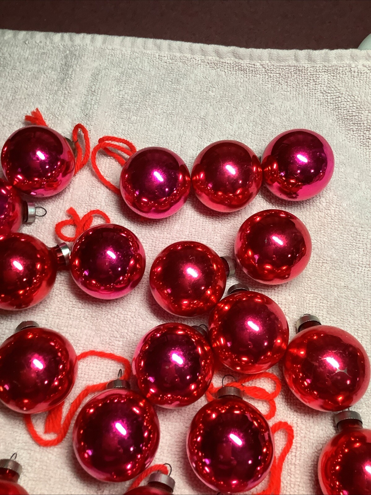 These ornaments are in used condition. I took a picture of the one that had the age cracking in it. Couple of them have some dark spots and if you have very minor missing paint. There are three different brands. Some are marked, shiny Brite, some are made in USA and some are plain. Please check out my pictures and judge for yourself.