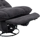 Specifications Place of Origin #originPlace# Main Color Black Main Material Upholstered Filler Foam Dangerous Goods #dangerFlag# Dimensions & Weights Assembled Length (in.) 39.37 Assembled Width (in.) 38.58 Assembled Height (in.) 40.16 Weight (lbs) 95.23 Product Features Push-Back Recliner: Simply lean back to recline using your body weight, and push forward to return to an upright position. Perfect for unwinding after a long day. Glider and Swivel: Features a smooth gliding and swivel function, allowing you to find your most comfortable position effortlessly. It's set to become your favorite spot in the house for relaxation. Durable Metal Frame: Constructed with a sturdy metal frame and base, capable of supporting up to 330 lbs, ensuring durability and stability. Comfortable Design: Upholstered in soft chenille fabric and filled with high-elastic material, offering a comfortable and fatigue-free seating experience ideal for reading, watching TV, or sleeping. Versatile Usage: Suitable for various rooms in your home, including the living room, nursery, bedroom, or study. Its design will complement your existing decor. Shipping Note: The recliner comes in two packages that might arrive separately over a few days. Feel free to contact us for any shipping inquiries. Description 90-135° Recliner Angle The 90-135° recliner angle offers flexibility and versatility for maximum comfort. 360-degree swivel A smooth 360-degree black metal swivel base allows for turning in any direction with ease. Extended footrest Extended footrest for complete relaxation, making it perfect for activities such as watching television, sleeping and reading. Product information Product Type