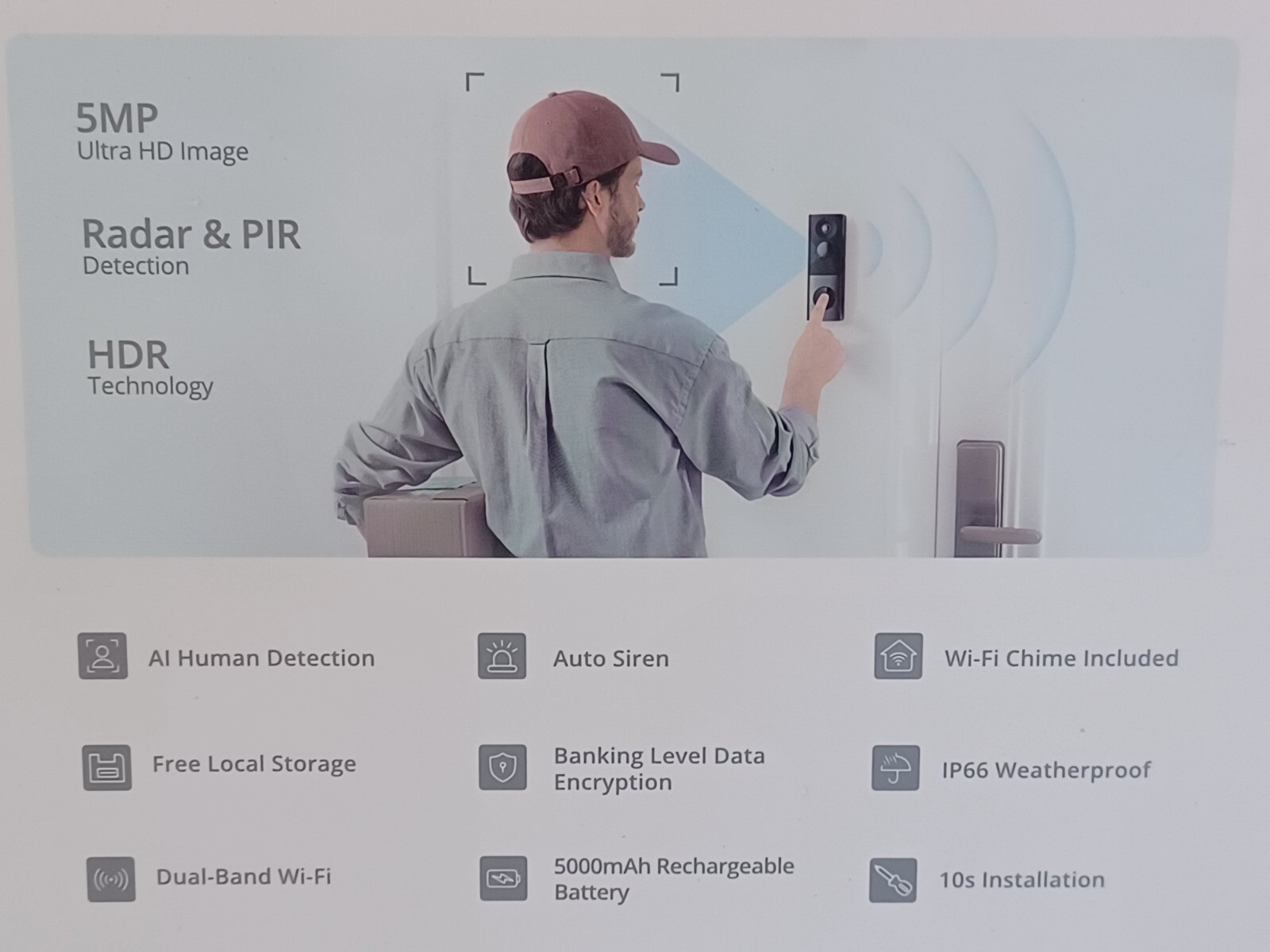 This doorbell is a game-changer! Super clear 5MP HD video, works wired or on battery, and the 360 view covers everything. Super easy to set up, and it arrived brand new in sealed packaging. Fast shipping and great seller communication. No blind spots, and love the wedge for the perfect angle. Totally worth it—highly recommend!