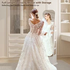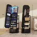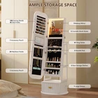 【Multi-functional Design, Multi-purpose Cabinet】: The mirror cabinet combines a vanity mirror with jewelry storage, saving space while meeting your daily needs. Built-in compartments, clear zoning, easy to store necklaces, rings, earrings and other types of jewelry, to avoid tangling and loss 【Large-capacity storage to meet diverse needs】: Our jewelry organizer including 108 earring slots, 36 earring holes, interior makeup mirror, 3 brush boxes, PVC storage bag, 65 ring slots, 24 necklace hooks, foldable shelf, 3 bracelet rods, 3 storage shelves, 1 big storage drawer. The drawer design allows you to store items that do not need to be exposed, keeping the display neat and beautiful 【High Definition Mirror, Create Exquisite Makeup】:Jewelry armoire adopts high definition silver mirror, the image is clear and distortion-free, make up and dress up more easily. The mirror can be equipped with LED light strips, soft and even light, even in a dim environment can also be easy to comb makeup 【Exquisite Craftsmanship, Showing High-end Quality】: Selection of environmentally friendly materials, the surface is finely polished, fine texture, durable and moisture-proof. Simple and fashionable design, easy to integrate into the modern home style, become a bright accent in the bedroom or bathroom 【Thoughtful details to enhance the experience】: This mirror jewelry cabinet standing easy to open and close smoothly, more convenient to access jewelry. Anti-dust and anti-oxidation design effectively protects your jewelry and prolongs its service life 【Easy to assemble】:This jewelry mirror cabinet comes with detailed installation instructions. If you have any questions, please contact us at any time 360° Swivel jewelry organizer with full length mirror with lights Three different colors of light can satisfy your different needs for makeup The cabinet is smartly designed with ample storage space to meet your needs 4-IN-1 Full Mirror Jewelry Armoire-Large capacity storage space for jewelry Built-in different compartments for easy sorting of all kinds of jewelry