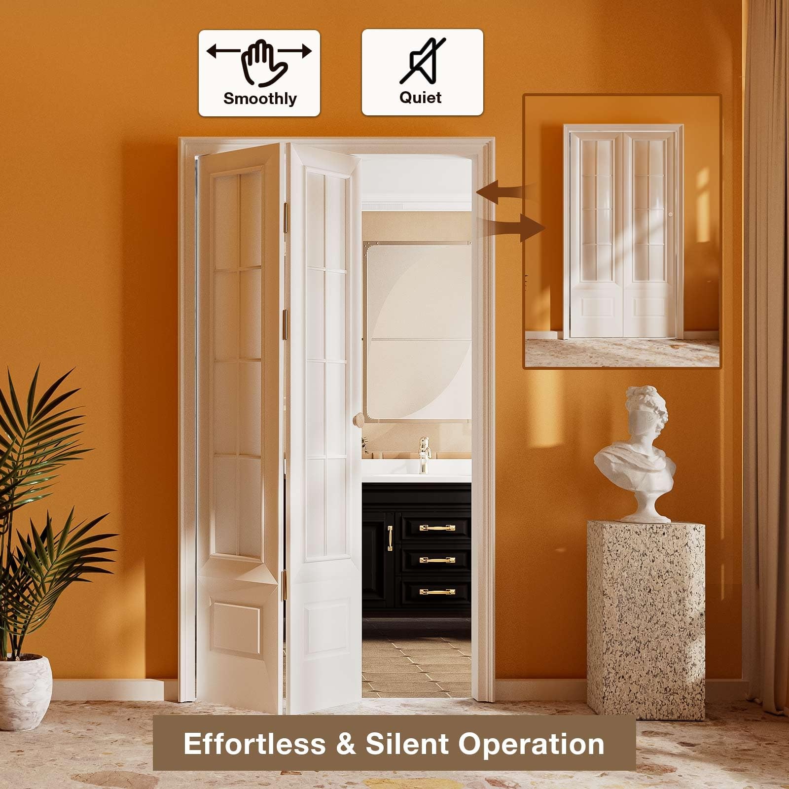 This bifold door track kit include track (36-Inch), 1 top bracket, 1 bottom bracket, 1 top pivot, 1 bottom pivot, 1 guide wheel, 1 wooden handle, 1 spring shaft, 3 hinges and all mounting screws. 【Complete Bifold Door Hardware Kit】This bifold door hardware kit include track (24-Inch), 1 top & bottom bracket, 1 top & bottom pivot, 1 guide wheel, 1 wooden handle, 1 spring shaft, 3 hinges and all mounting screws 【Advantages & Features】Space saving, this bi-fold door hardware kit is used for bi-fold doors, allowing full access to closets or use of door opening space, the track is one-piece, not segmented, can be installed directly without assembly 【Smooth and Silent Movement】The folding door hardware is made of high-quality stainless steel, nylon and wood, it can bear a load of 200lbs, the door opening and closing operation is smooth and silent. 【Easy Installation】No need to cut mortises, surface installation, easy maintenance; four-way adjustment of the distance and tilt between the door and the door frame, with detailed installation instructions 【Wide Application】This bifold door hardware kit is suitable for light folding doors, closet folding doors, such as bathroom doors, closet doors, laundry room doors, pantry room doors, tool room doors, windows, etc.