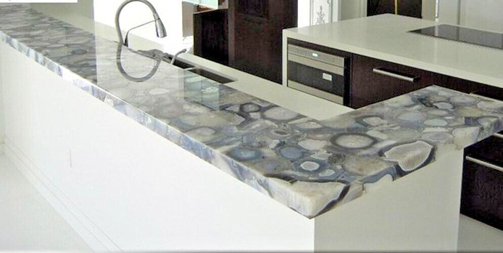 Welcome To Stone-Craft- Creations Shop Description Very unique Art by Indian Artist ,Coffee/Side Table top Used Material: Natural Agate Stones Arts Size: 36"x18" Inches Color: As Photo Shape: Rectangle Pattern: Handmade Room: Bedroom, Dining Room, Hallway, Home Office/Study, Kid’s Bedroom, Kitchen, Laundry/Utility Room, Living Room,Patio, Playroom Packaging: Wood & Foam Export Packing Shipping: Air Can Be customize ,Please Message us your desired Size 1. It can be used as a Dining Table, Guest table, coffee table, center table top in show room as well as a gift for your loved ones. 2. The table top is made in Agra India & fully handmade. 3. The top will be delivered by FedEx or DHL free of cost door to door. 4. If there is any local tax,custom duties or Vat will be paid by the buyer at the destination. 5. The parcel is dispatch with proper packing & fully insured covering all kind of risk. 6. To maintain the table top is simple soap & water & dry cotton cloth. 7. If You Are Looking Something Customize, Let Us Know We Will Make For You As Per Your Design, Size & Shape. 8.Table top does not includes any wooden, marble stand or base if you like to buy marble or wooden base or stand that will be charged extra. Marble Agate Table Tops We are Manufacturer & Exporter of marble agate table tops. These marble agate table tops have different shapes like Round Table top, Octagonal Table Tops, Rectangle / Dining table tops, Square Table tops, Chess Table tops, Taj Mahal Table tops, Custom Designs Table tops also make marble Table top Base and Stand. Then we can be used as dining tables, coffee tables, Center tables, conference tables, chess boards, reading tables, bar tables , Garden table, side and corner tables or any other use as per the indoor and outdoor decor. They can also be placed outdoors in the garden, as marble is stain free, offers great resistance to the forces of nature, and can withstand heavy temperatures. We also meet customized requirement and offer our marble table tops at industry leading prices. About Agate Stone- Agate is a rock consisting primarily of cryptocrystalline silica, chiefly chalcedony, alternating with microgranular quartz. It is characterized by its fineness of grain and variety of color. Although agates may be found in various kinds of host rock, they are classically associated with volcanic rocks and can be common in certain metamorphic rocks. Ancient use of agate stone Agate is one of the most common materials used in the art of hardstone carving, and has been recovered at a number of ancient sites, indicating its widespread use in the ancient world; for example, archaeological recovery at the Knossos site on Crete illustrates its role in Bronze Age Minoan culture Types Of Agate 1. Fortification Agate This is the most common and distinctive type of agate. In these agates, bands crystallized into concentric layers that more or less follow the shape of the cavity. The banding resembles an aerial view of a fort 2. Water-Line Agate (also called water-level or onyx) During its formation, silica-rich solution either entered the cavity slowly laying one band at a time, excess water drained out leaving a small amount of silica to settle out into separate bands, or the vesicle filled under low pressure. In any case, the silica crystallization in water-level agates is controlled by gravity in one orientation, forming a stack up of parallel bands. 3. Shadow Agate Some agates exhibit a shadow effect in which there is what appears to be movement across the agate layers when the specimen is rocked back and forth (or your orientation to the specimen moves). This optical effect only occurs when there are alternating translucent and opaque bands. It is caused when light goes into the agate, but is not reflected out. 4. Tube Agate Tube Agate During the formation of some agates, parallel projections of tiny hair-thin mineral rods grow first within the silica gel, around which later the chalcedony agate micro-crystals form. In some cases the inclusions remain, but sometimes they weather away leaving hollow tubes that subsequently fill in with silica. 5. Eye Agates This mysterious agate characteristic is believed to be formed when most of the silica gel drains from the cavity, leaving only a droplet that “beads up” on the inside wall of the cavity. This droplet crystallizes into solid chalcedony “eyes”. In some cases, crystal growth will continue from this droplet in a manner similar to the formation of stalactites in caves. Later, the pocket fills in with the usual deposition of chalcedony microcrystals. 6. Plume Agate These agates initially had formations on their outside layer that formed prior to the deposition of chalcedony bands. They are filament growths of mineral inclusions that resemble ferns or feathers. 7. Geode Agate Geode Agate In some cases the supply of silica-rich water runs out before the entire cavity fills in. When there is a hollow center within a crystalline outer fill, the specimen is considered a geode. Not all geodes have agate banding, but many do. Also, the inner layers can form into several different types of silica mineral crystals and may even have other types of mineral crystals. 8. Moss Agate Moss Agate Moss agates have clusters of mineral inclusions that resemble plants, trees, or landscapes. Most moss agate inclusions are comprised of iron or manganese oxide. In some cases, the inclusions inhibit chalcedony banding allowing the mineral clusters free reign to grow within the silica gel. 9. Seam Agate Seam agates for in cracks within host rock, rather than in rounder pockets. The bands form in parallel rows that follow and fill in the crack or seam.