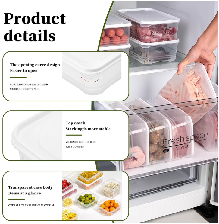 These plastic deli containers are a game-changer for kitchen storage! The easy-open lid design makes them super convenient, and the variety of sizes fits everything from small leftovers to big meal preps. They’re sturdy, reusable, and stack neatly to save space. Perfect for organizing the fridge or pantry—highly recommend!