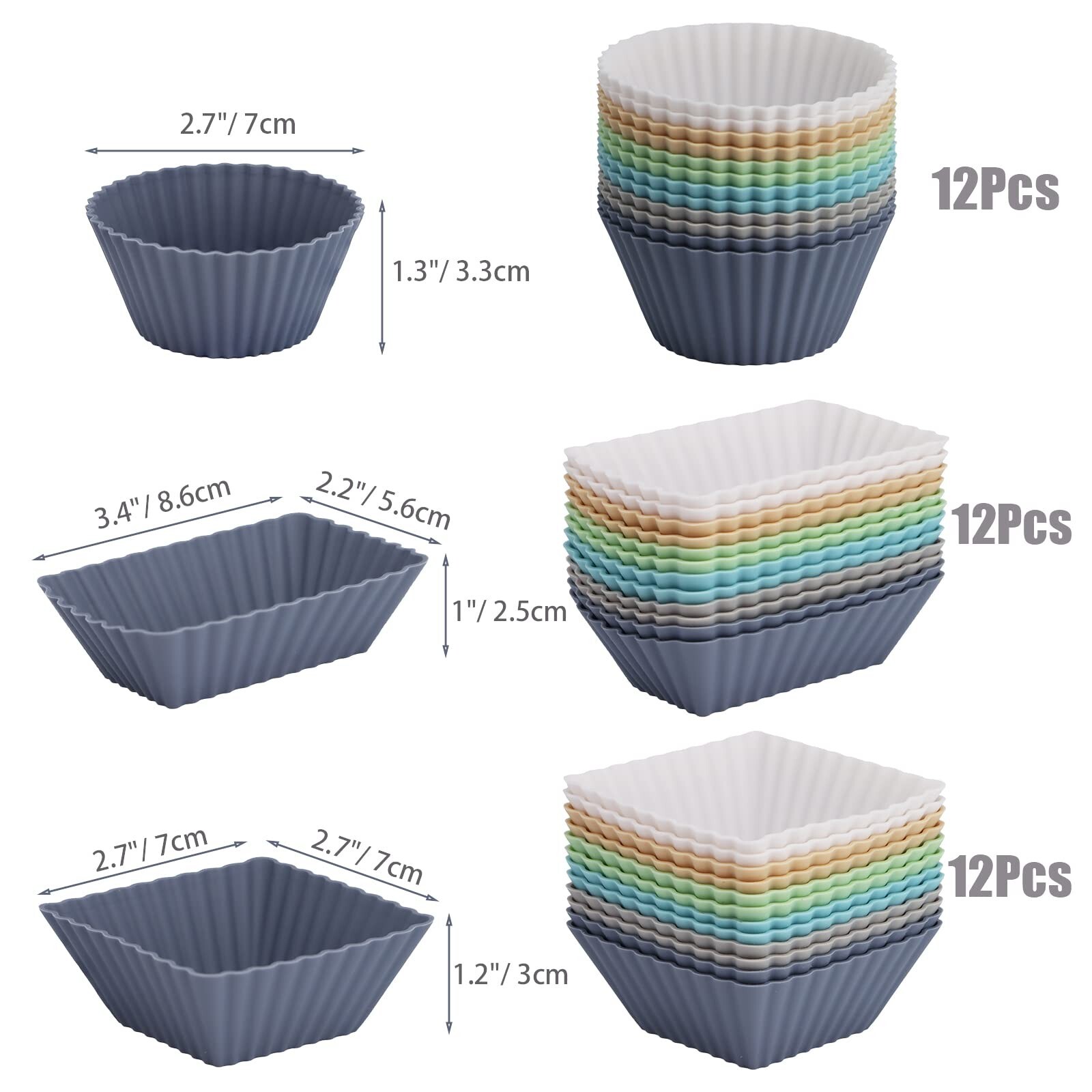 36-Pack Silicone Cupcake Liners, Reusable Muffin Cups – Round, Square & Rectangle Baking Cups, Non-Stick, Easy to Clean, Bento Box Accessories, Lunch Box Dividers for Kids(36 Liners + 20 Animal Picks) - Buy Now with Fast Shipping! 36-Pack Silicone Cupcake Liners, Reusable Muffin Cups – Round, Square & Rectangle Baking Cups, Non-Stick, Easy to Clean, Bento Box Accessories, Lunch Box Dividers for Kids(36 Liners + 20 Animal Picks) Product Details Color: Neutral Color Brand: wxhaoa Material: Silicone Reusability: Reusable Occasion: Wedding, Christmas, Baby Shower, Birthday Color: Neutral Color Brand: wxhaoa Material: Silicone Reusability: Reusable Occasion: Wedding, Christmas, Baby Shower, Birthday Material Feature: Reusable Shape: Square Size: Standard Manufacturer: wxhaoa Package Dimensions: 5.47 x 4.09 x 3.43 inches Item Weight: 1.08 pounds Item model number: wxhaoa Date First Available: July 23, 2024 Key Features ✅ Silicone Reusable Baking Cups; Made of food grade silicone, safety use. and reusable, can be used for thousands of times. Save money for you comparing with disposable paper cups. ✅ 3 Shapes Lunch Box Dividers in round, square, and rectangular designs. You can mix to use them according to the shape of the lunch box and food, separating your meals well to prevent flavor blending. Well-organized food presentations stimulate children's appetites, making mealtime a joyful experience. ✅ Comparing with others, our cupcake liners are thicker, sturdier. They are enough strong to keep their shapes after placing food or egg paste and stand firmly in lunch box/baking sheet without tilting or shifting. ✅ Bake with Confidence - These silicone cupcake liners are made with premium materials and can withstand high temperatures from -104F to 450F, making them suitable for use in microwave ovens, ovens, refrigerators, and freezers. Additionally, their heat resistance ensures that your baked goods will come out perfectly every time, giving you the confidence to experiment with new recipes and techniques. ✅ Easy to Clean - These silicone muffin cups are dishwasher-safe and also easy to clean by hand. You can simply rinse them in warm soapy water or pop them in the dishwasher after use. As a result, you can spend more time enjoying your baked creations and less time cleaning up. ✅ Perfect as bento box dividers, you can sort snacks and fruits for your kid's lunch box. Also great for cooking eggs, baking muffins, preparing treats, or as car cup holder liner, also very helpful at birthday or holiday party, baby shower, or wedding. Product Description