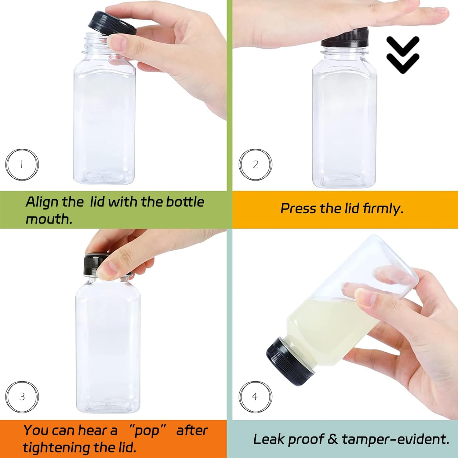 Store New Arrivals Add to Favorite View Feedback Contact 36Pcs 8Oz Juice Bottles with Lids, Food Grade Reusable Clear Containers with Black Tamper Evident Caps for Juice, Milk and Other Beverages Description Item model number Juice Bottles Bottle Type Standard Bottle Capacity 8 ounces Color clear Product Dimensions 2.1 x 2.1 x 5.1 inches; 8 ounces Material Plastic Size 8oz VALUE PACKAGE: Contains 36pcs 8oz plastic juice bottles with tamper-proof lids, size: 2.1 inches x 5.1 inches. It comes with a cleaning brush, a funnel, and 36 stickers, making it easy to use.Attention: the colors of brushes and funnels are random. PREMIUM QUALITY: Made of thick food grade PET, these juice bottles are with high transparency and air tightness, safe and odorless, drop-proof and lasting. The lid can makes your drink more hygienic. It is easy to clean and reusable.The 8oz bottles meets various needs. VERSATILE: can be used to hold juice, coffee or any drinks. You can mark each drink with the sticker for easy distinction. To decorate graduation ceremonies and birthday parties, or add trademarks for shop sales and dining car business. EASY TO CARRY: The small, light, and airtight design helps you carry the juice bottles with you. It is a excellent choice for work, class, travel, and participation in any party. QUALITY products: If you have any question, please contact our service team. We will provide you with quick and easy help to solve any problems that may arise. Tip: Our bottles cannot be heated in the microwave heating or cleaned in the dishwasher. Product description ABOUT US We offer the best prices around on high quality products. Our E-store includes media such as books, movies, music and games while offering electronics, toys, sporting apparel, clothing, tools, general home, garden items and more. SHIPPING We are always working hard to ensure your package arrives as soon as possible. Please understand that some factors like weather, high postal traffic, and the performance of shipping companies are outside of our control. We offer free shipping to the lower 48 states and ship within 2 business days of payment, usually sooner. We do not accept P.O. Boxes. Please provide a physical address. RETURNS We offer a 30-Day Return Policy on items which you are not completely satisfied with. You have the option for a full-refund or an exchange of the item. No returns are available on items shipped outside of the USA. PAYMENT We accept PayPal. CONTACT US This page content is yet to come Please ad us to your favorite seller and visit again later Thank You CUSTOMER SATISFACTION We try our very best to make sure every customer is completely satisfied. If there's a problem, message us! We're happy to help.