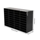 Specification Color: Black Style: Modern Shape: Rectangular Material: PVC Board, Felt Finish: PVC Coextrusion Layer Number of Compartments: 36 Assembly Required: Yes Frame Thickness: 10mm/0.39in Partition Thickness: 5mm/0.2in Load-Bearing: 80kg/176 lbs Net Weight: 13kg/28.6 lbs Gross Weight: 14kg/30.86 lbs Each Compartment Size(L*H): 23.7*6cm/9.3*2.4in Product Size: 100*30*61cm/39.4*11.8*24in Package Size: 108*32*12cm/42.5*12.6*4.7in Package Included 1*36 Compartment Literature Organizer 1 Pair* Gloves 1* English Installation Diagram 1* Schematic Diagram of Sandpaper Grinding All Accessories for Assembly 36 Compartment Literature Organizer Desktop File Holder Office Mailbox Cabinet Description 36-compartment literature organizer keeps your literature, files, and forms organized and within easy reach and each compartment leaves plenty of space for all your papers to maximize your storage space. The thickened PVC board allows it to bear a weight of up to 176 lbs, and the environmentally friendly material allows you to use it with peace of mind. It is a professional and thoughtful assistant to your office! Specification Color: Black Style: Modern Shape: Rectangular Material: PVC Board, Felt Finish: PVC Coextrusion Layer Number of Compartments: 36 Assembly Required: Yes Frame Thickness: 10mm/0.39in Partition Thickness: 5mm/0.2in Load-Bearing: 80kg/176 lbs Net Weight: 13kg/28.6 lbs Gross Weight: 14kg/30.86 lbs Each Compartment Size(L*H): 23.7*6cm/9.3*2.4in Product Size: 100*30*61cm/39.4*11.8*24in Package Size: 108*32*12cm/42.5*12.6*4.7in Package Included 1*36 Compartment Literature Organizer 1 Pair* Gloves 1* English Installation Diagram 1* Schematic Diagram of Sandpaper Grinding All Accessories for Assembly Key Features Sturdy and Durable : It is made of PVC board with a PVC coextrusion layer, making it resistant to corrosion, rust, scratches, heat, and moisture, supporting your long-term use. Solid Structure : The 10mm thick frame and 5mm partition have a tough texture, allowing this product to boast a strong load-bearing capacity of up to 176 lbs, making it not easily shaken, and considerably increasing its use of security. Spacious Storage : 36 compartments with 9.3 * 2.4 inches can provide enough classification space for you to store files, brochures, or books, allowing you to organize your office documents, making them easy to search and reach. In addition, the spacious desktop allows you to place potted plants, cups, decorations, etc., making your office more tidy and orderly. Thoughtful Design : The partition can be removed to store tall items. You can design your own cabinet layout to create compartments that best suit your needs.The semi-open design is not only convenient to access but also conducive to ventilation and drying, and makes the documents less likely to accumulate dust. Effortless to Clean : The smooth surface allows easy wiping of stains and marks on the tops, creating a clean and healthy working environment for you. Easy to Assemble : Simple construction, complete accessories, and an English installation diagram help you achieve a quick installation, you just need to make sure all parts are properly nested. Simple and Elegant : The simple black makes it both elegant and stylish, which is very adaptable to most use scenarios and can blend with any decorative style, making it an ideal addition to your office. Protective Packaging : The strong box and bubble bags provide comprehensive protection for products to ensure that it is fully delivered to you to the greatest extent possible. Guaranteed Customer Service: We aim to provide quality products and services. If you have problems, please feel free to contact us. We will reply and solve the problem for you as soon as possible. Details Felt Anti-slip Pads : They can maintain the stability of the product without displacement, and protect the floors from scratches. Rounded Corners : The corners and edges are finely treated to provide a comfortable and safer touch. Application It can be used to organize student assignments, books, magazines, files, brochures, and forms in restaurants, churches, classrooms, seminars, families, schools, study rooms, cafes, weddings, homes, companies, and reception areas. Notes Please place the product in a dry, shady, and well-ventilated place. Please allow the slight color difference caused by the shooting light and 1-3cm error due to manual measurement and make sure you do not mind before ordering. Payment Delivery details Terms of sales About us Contact us Payment We accept ebay payment 。 Fees such as import duties, taxes are not included in the item price or shipping costs. These charges are the buyer's responsibility. Delivery details Shipping: 2-9 working days to: USA Terms of sales We maintain high standards of excellence and strive for hundred percent customer satisfaction. Feedback is very important to us. We hope that you contact us immediately before you give neutral or negative feedback, so that we can address your concerns. It is impossible to address issues if we do not know about them! About us Your satis faction is our ultimate goal. We work hard to earn your trust and future business. Our certified technicians have tested each item before shipping. The unit comes with 1 year limited warranty on all manufacturing defects. a) If you receive a defective item, you may return it or ask for a discount. Please contact us within 14 days after you receive the package. b) What you returned must be intact and in its original packaging as re? u. Customer is responsible for shipping costs of the returned item. c) We will cover the cost of shipping back t with the shipping rate indicated in the registration page. We will send you a new unit or refund the full payment you paid. Thank you. Contact us Business Hour Business Hour: Monday To Friday: 8:30 AM to 5:00 PM (Beijing China time) Due to time zones, our reply to your questions may not be immediately. But within above working time, we wi