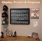 Baseball Card Display Case, 36 Graded Card Display Frame Lockable, Trading Card Display with UV Protection Sports Card Display Case for Baseball Cards, Football Cards, Sports Cards About this item Wood [The Perfect Gift for Card Lovers] This exquisite wooden card display case features a matte black finish paired with an elegant velvet background, creating a sophisticated presentation. Ideal for showcasing baseball cards, football cards, hockey cards, PKM and TCG, it is the perfect gift for collectors, sports fans, or anyone who cherishes their card collection. [Versatile Compatibility] With external dimensions of 31.1" W x 24.4" H x 2.16" D, an interior depth of 1.18", and a single-layer height of 5.6", this graded card display case is designed specifically for graded cards up to 5.6 inches tall, ensuring a perfect fit for your cherished collection [Ultra Clear&Lasting Protection] Featuring a premium acrylic glass offering 92% transparency and 98% UV protection, the trading card display case provides a crystal-clear view while preventing yellowing and fading from light exposure, ensuring your valuable cards remain in pristine condition. [Sturdy Structure&Protection] Crafted from high-quality wood, this baseball card display case features solid construction with non-slip edges on each shelf to keep your cards secure. Anti-theft locks guard against loss or damage, while metal brackets and tooth hanger ensure stable wall mounting, providing a safe environment for your treasured cards. [Safe Packaging] The sports card display case is wrapped in 360 degrees of foam for complete protection. The acrylic glass are covered with a protective film to prevent scratches, ensuring that your display case arrives in perfect condition