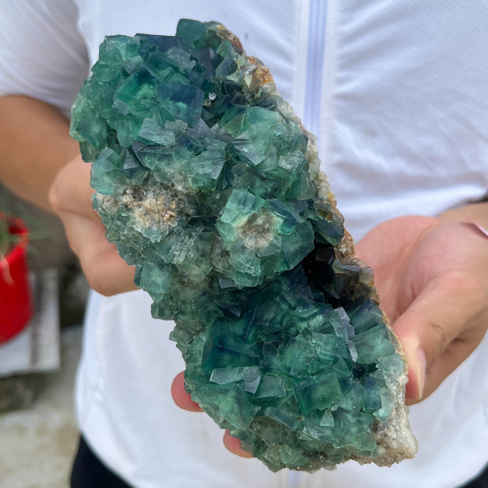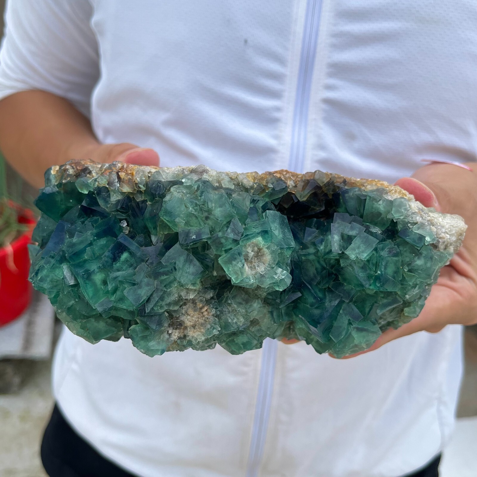 This stunning natural green fluorite cluster is absolutely breathtaking! The vibrant color and unique crystal formations make it a perfect display piece. It's heavier than expected, with a nice substantial feel, and the details are even more beautiful in person. Great for collectors or anyone who loves natural crystals—definitely worth it!