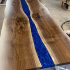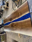 36"x24" Blue Epoxy River Table Top, Live Edge Wooden Dining Furniture Epoxy Tops