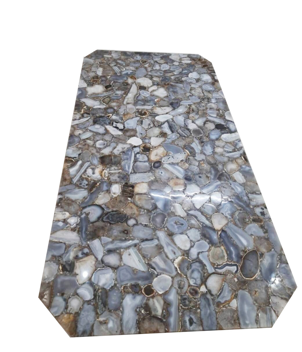 Welcome To Stone-Craft- Creations Shop Description Very unique Art by Indian Artist ,Coffee/Side Table top Used Material: Natural Agate Stones Arts Size: 36"x24" Inches Color: As Photo Shape: Rectangle Pattern: Handmade Room: Bedroom, Dining Room, Hallway, Home Office/Study, Kid’s Bedroom, Kitchen, Laundry/Utility Room, Living Room,Patio, Playroom Packaging: Wood & Foam Export Packing Shipping: Air Can Be customize ,Please Message us your desired Size 1. It can be used as a Dining Table, Guest table, coffee table, center table top in show room as well as a gift for your loved ones. 2. The table top is made in Agra India & fully handmade. 3. The top will be delivered by FedEx or DHL free of cost door to door. 4. If there is any local tax,custom duties or Vat will be paid by the buyer at the destination. 5. The parcel is dispatch with proper packing & fully insured covering all kind of risk. 6. To maintain the table top is simple soap & water & dry cotton cloth. 7. If You Are Looking Something Customize, Let Us Know We Will Make For You As Per Your Design, Size & Shape. 8.Table top does not includes any wooden, marble stand or base if you like to buy marble or wooden base or stand that will be charged extra. Marble Agate Table Tops We are Manufacturer & Exporter of marble agate table tops. These marble agate table tops have different shapes like Round Table top, Octagonal Table Tops, Rectangle / Dining table tops, Square Table tops, Chess Table tops, Taj Mahal Table tops, Custom Designs Table tops also make marble Table top Base and Stand. Then we can be used as dining tables, coffee tables, Center tables, conference tables, chess boards, reading tables, bar tables , Garden table, side and corner tables or any other use as per the indoor and outdoor decor. They can also be placed outdoors in the garden, as marble is stain free, offers great resistance to the forces of nature, and can withstand heavy temperatures. We also meet customized requirement and offer our marble table tops at industry leading prices. About Agate Stone- Agate is a rock consisting primarily of cryptocrystalline silica, chiefly chalcedony, alternating with microgranular quartz. It is characterized by its fineness of grain and variety of color. Although agates may be found in various kinds of host rock, they are classically associated with volcanic rocks and can be common in certain metamorphic rocks. Ancient use of agate stone Agate is one of the most common materials used in the art of hardstone carving, and has been recovered at a number of ancient sites, indicating its widespread use in the ancient world; for example, archaeological recovery at the Knossos site on Crete illustrates its role in Bronze Age Minoan culture Types Of Agate 1. Fortification Agate This is the most common and distinctive type of agate. In these agates, bands crystallized into concentric layers that more or less follow the shape of the cavity. The banding resembles an aerial view of a fort 2. Water-Line Agate (also called water-level or onyx) During its formation, silica-rich solution either entered the cavity slowly laying one band at a time, excess water drained out leaving a small amount of silica to settle out into separate bands, or the vesicle filled under low pressure. In any case, the silica crystallization in water-level agates is controlled by gravity in one orientation, forming a stack up of parallel bands. 3. Shadow Agate Some agates exhibit a shadow effect in which there is what appears to be movement across the agate layers when the specimen is rocked back and forth (or your orientation to the specimen moves). This optical effect only occurs when there are alternating translucent and opaque bands. It is caused when light goes into the agate, but is not reflected out. 4. Tube Agate Tube Agate During the formation of some agates, parallel projections of tiny hair-thin mineral rods grow first within the silica gel, around which later the chalcedony agate micro-crystals form. In some cases the inclusions remain, but sometimes they weather away leaving hollow tubes that subsequently fill in with silica. 5. Eye Agates This mysterious agate characteristic is believed to be formed when most of the silica gel drains from the cavity, leaving only a droplet that “beads up” on the inside wall of the cavity. This droplet crystallizes into solid chalcedony “eyes”. In some cases, crystal growth will continue from this droplet in a manner similar to the formation of stalactites in caves. Later, the pocket fills in with the usual deposition of chalcedony microcrystals. 6. Plume Agate These agates initially had formations on their outside layer that formed prior to the deposition of chalcedony bands. They are filament growths of mineral inclusions that resemble ferns or feathers. 7. Geode Agate Geode Agate In some cases the supply of silica-rich water runs out before the entire cavity fills in. When there is a hollow center within a crystalline outer fill, the specimen is considered a geode. Not all geodes have agate banding, but many do. Also, the inner layers can form into several different types of silica mineral crystals and may even have other types of mineral crystals. 8. Moss Agate Moss Agate Moss agates have clusters of mineral inclusions that resemble plants, trees, or landscapes. Most moss agate inclusions are comprised of iron or manganese oxide. In some cases, the inclusions inhibit chalcedony banding allowing the mineral clusters free reign to grow within the silica gel. 9. Seam Agate Seam agates for in cracks within host rock, rather than in rounder pockets. The bands form in parallel rows that follow and fill in the crack or seam.