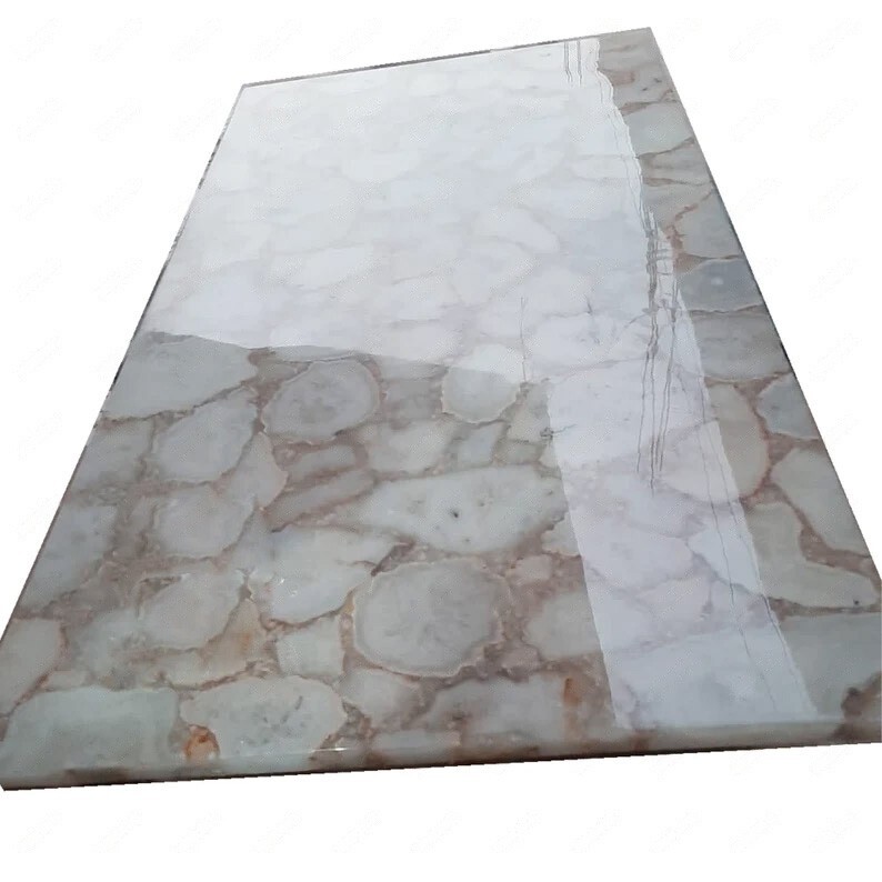 Welcome To Stone-Craft- Creations Shop Description Very unique Art by Indian Artist ,Coffee/Side Table top Used Material: Natural Agate Stones Arts Size: 24" x 36" Inches Color: Natural Agate Shape: Rectangle Pattern: Handmade Room: Bedroom, Dining Room, Hallway, Home Office/Study, Kid’s Bedroom, Kitchen, Laundry/Utility Room, Living Room,Patio, Playroom Packaging: Wood & Foam Export Packing Shipping: Air Can Be customize ,Please Message us your desired Size 1. It can be used as a Dining Table, Guest table, coffee table, center table top in show room as well as a gift for your loved ones. 2. The table top is made in Agra India & fully handmade. 3. The top will be delivered by FedEx or DHL free of cost door to door. 4. If there is any local tax,custom duties or Vat will be paid by the buyer at the destination. 5. The parcel is dispatch with proper packing & fully insured covering all kind of risk. 6. To maintain the table top is simple soap & water & dry cotton cloth. 7. If You Are Looking Something Customize, Let Us Know We Will Make For You As Per Your Design, Size & Shape. 8.Table top does not includes any wooden, marble stand or base if you like to buy marble or wooden base or stand that will be charged extra. Marble Agate Table Tops We are Manufacturer & Exporter of marble agate table tops. These marble agate table tops have different shapes like Round Table top, Octagonal Table Tops, Rectangle / Dining table tops, Square Table tops, Chess Table tops, Taj Mahal Table tops, Custom Designs Table tops also make marble Table top Base and Stand. Then we can be used as dining tables, coffee tables, Center tables, conference tables, chess boards, reading tables, bar tables , Garden table, side and corner tables or any other use as per the indoor and outdoor decor. They can also be placed outdoors in the garden, as marble is stain free, offers great resistance to the forces of nature, and can withstand heavy temperatures. We also meet customized requirement and offer our marble table tops at industry leading prices. About Agate Stone- Agate is a rock consisting primarily of cryptocrystalline silica, chiefly chalcedony, alternating with microgranular quartz. It is characterized by its fineness of grain and variety of color. Although agates may be found in various kinds of host rock, they are classically associated with volcanic rocks and can be common in certain metamorphic rocks. Ancient use of agate stone Agate is one of the most common materials used in the art of hardstone carving, and has been recovered at a number of ancient sites, indicating its widespread use in the ancient world; for example, archaeological recovery at the Knossos site on Crete illustrates its role in Bronze Age Minoan culture Types Of Agate 1. Fortification Agate This is the most common and distinctive type of agate. In these agates, bands crystallized into concentric layers that more or less follow the shape of the cavity. The banding resembles an aerial view of a fort 2. Water-Line Agate (also called water-level or onyx) During its formation, silica-rich solution either entered the cavity slowly laying one band at a time, excess water drained out leaving a small amount of silica to settle out into separate bands, or the vesicle filled under low pressure. In any case, the silica crystallization in water-level agates is controlled by gravity in one orientation, forming a stack up of parallel bands. 3. Shadow Agate Some agates exhibit a shadow effect in which there is what appears to be movement across the agate layers when the specimen is rocked back and forth (or your orientation to the specimen moves). This optical effect only occurs when there are alternating translucent and opaque bands. It is caused when light goes into the agate, but is not reflected out. 4. Tube Agate Tube Agate During the formation of some agates, parallel projections of tiny hair-thin mineral rods grow first within the silica gel, around which later the chalcedony agate micro-crystals form. In some cases the inclusions remain, but sometimes they weather away leaving hollow tubes that subsequently fill in with silica. 5. Eye Agates This mysterious agate characteristic is believed to be formed when most of the silica gel drains from the cavity, leaving only a droplet that “beads up” on the inside wall of the cavity. This droplet crystallizes into solid chalcedony “eyes”. In some cases, crystal growth will continue from this droplet in a manner similar to the formation of stalactites in caves. Later, the pocket fills in with the usual deposition of chalcedony microcrystals. 6. Plume Agate These agates initially had formations on their outside layer that formed prior to the deposition of chalcedony bands. They are filament growths of mineral inclusions that resemble ferns or feathers. 7. Geode Agate Geode Agate In some cases the supply of silica-rich water runs out before the entire cavity fills in. When there is a hollow center within a crystalline outer fill, the specimen is considered a geode. Not all geodes have agate banding, but many do. Also, the inner layers can form into several different types of silica mineral crystals and may even have other types of mineral crystals. 8. Moss Agate Moss Agate Moss agates have clusters of mineral inclusions that resemble plants, trees, or landscapes. Most moss agate inclusions are comprised of iron or manganese oxide. In some cases, the inclusions inhibit chalcedony banding allowing the mineral clusters free reign to grow within the silica gel. 9. Seam Agate Seam agates for in cracks within host rock, rather than in rounder pockets. The bands form in parallel rows that follow and fill in the crack or seam.