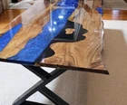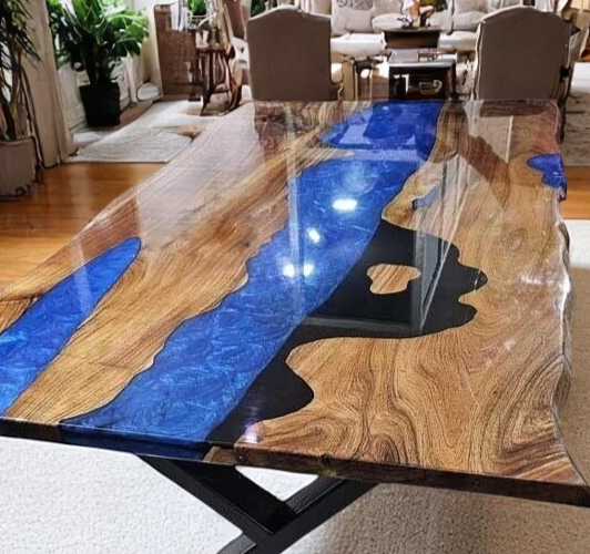 Table Size: 60"x36 " Inches Stand Size: 28.5" Inches Tall Experience the pinnacle of craftsmanship with our Handmade Wood and Epoxy Resin Trading Desk, designed to enhance your workspace with a blend of modern elegance and artisanal quality. Each desk is crafted from premium Walnut wood, enriched with vibrant pigments that create a stunning visual effect. The result is a unique, functional work of art that serves as both a statement piece and a practical surface for your trading or gaming needs. Key Features: Premium Materials: Our desks are crafted from high-quality wood and epoxy resin, combining durability with artistic beauty. The rich texture of the wood is accentuated by the glossy resin, making each desk a one-of-a-kind masterpiece. Customizable Options: Choose from a variety of stand colors, including Black, Silver, or Golden, to perfectly complement your interior decor. Additionally, we offer customization for size and shape, allowing you to create a desk that fits your exact specifications. Contemporary Design: The resin river design adds a contemporary touch to your space, ensuring your desk stands out as a unique focal point in any room. Perfect Gift Idea: This desk is an ideal gift for those who appreciate exceptional craftsmanship and modern design. Its stylish appearance and functional design make it a thoughtful and impressive gift. Live Edge Detail: We use the finest live edge wood slabs, sourced from both domestic and exotic species, ensuring each desk has a natural, organic feel. The live edge detail adds a rustic charm, making each piece truly unique. UV Resistant Resin: The high-quality resin used in the tabletop not only enhances the beauty of the desk but also offers exceptional strength and durability. It’s UV resistant, ensuring that the vibrant colors and glossy finish will last for years to come. Ordering Information: Made to Order: Each desk is meticulously handcrafted upon order, ensuring a personalized touch and the highest attention to detail. Worldwide Shipping: We offer global shipping, with buyers responsible for any applicable customs and import taxes. Please note that due to the use of raw wood, each desk may vary slightly from the one shown in photos, adding to its uniqueness. Thank you for visiting........................