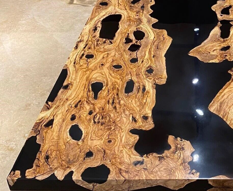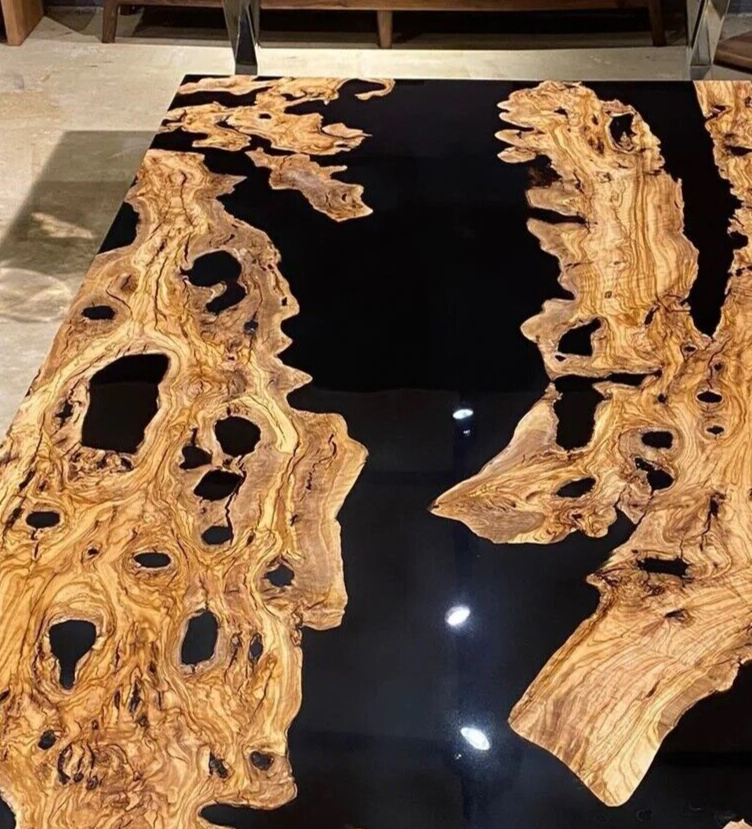 $ 1569.9172x48 Black Epoxy Resin Dining Table with Walnut Live Edge Wooden Hallway Decor