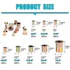 About this item INCLUDE:370Pieces Carbon Steel Flat Head Rivnut .5/32-32 80PCS; 6#-32 70PCS; 1/4''-20 40PCS; 8#-32 60Pcs; 10#-24 60PCS; 5/16-18 20Pcs; 3/8-16 20Pcs; 1/2-13 10Pcs; 1/2-13 10Pcs. Made of high quality carbon steel. Galvanized. short hair. Knurled body. Galvanized finish helps prevent surface damage and fading, oxidation resistance, healthy lead-free, high strength, non-deformation, load-bearing threads. Rivet nuts have high hardness and excellent corrosion resistance, are durable and do not deform. These nut kits are lightweight and pack in a clear storage case for easy portability. Usually used in various metal sheet, pipe and other manufacturing industries, widely used in automobiles, aviation, railways, refrigeration, elevators, switches, instruments, furniture, and decoration. Service: If you are not satisfied with our products for any reason, please feel free to contact us and we will solve the problem. Product Specifications Drive System:Spline Ean:0710670512757 Size:5sizes,370pc set Thread Size:9sizes