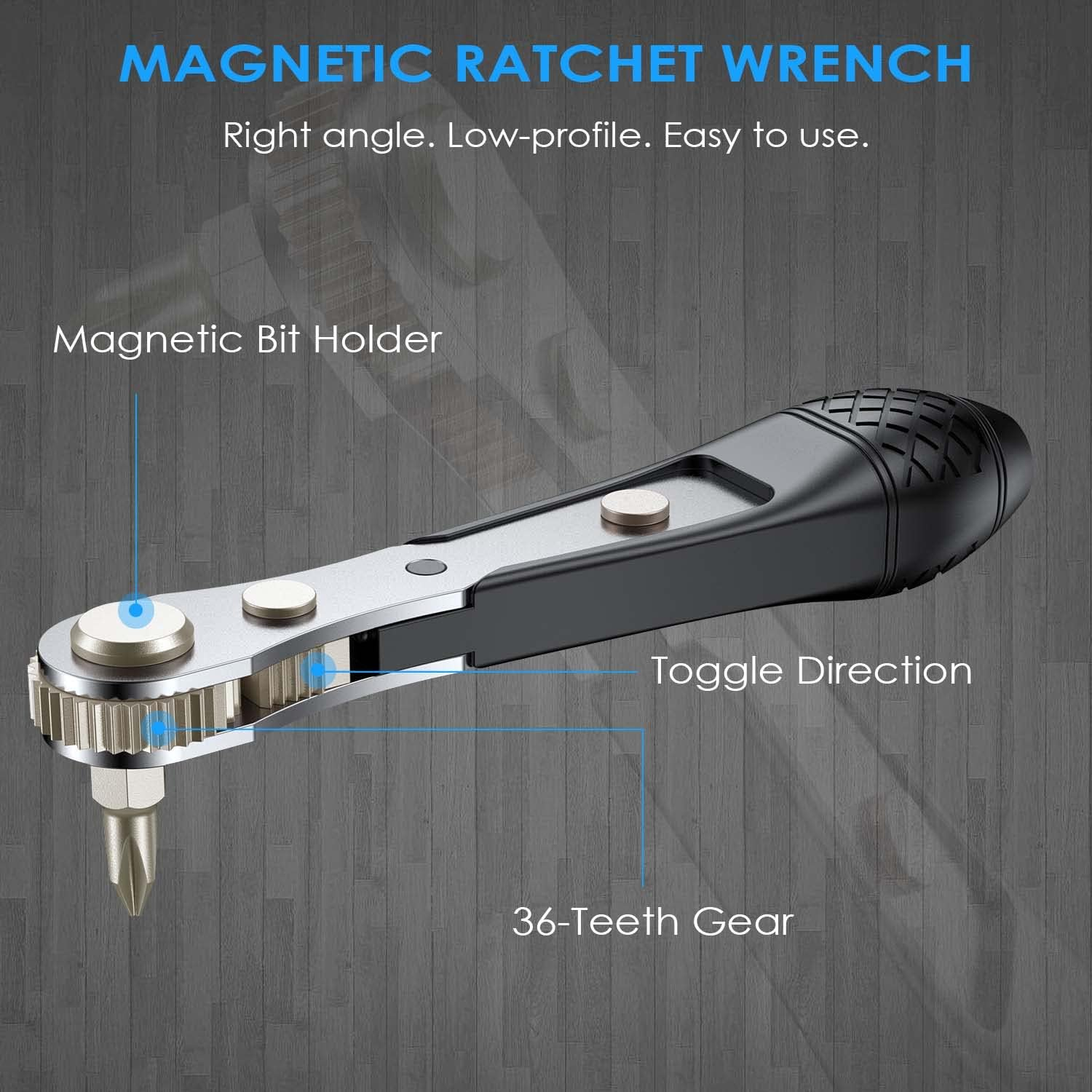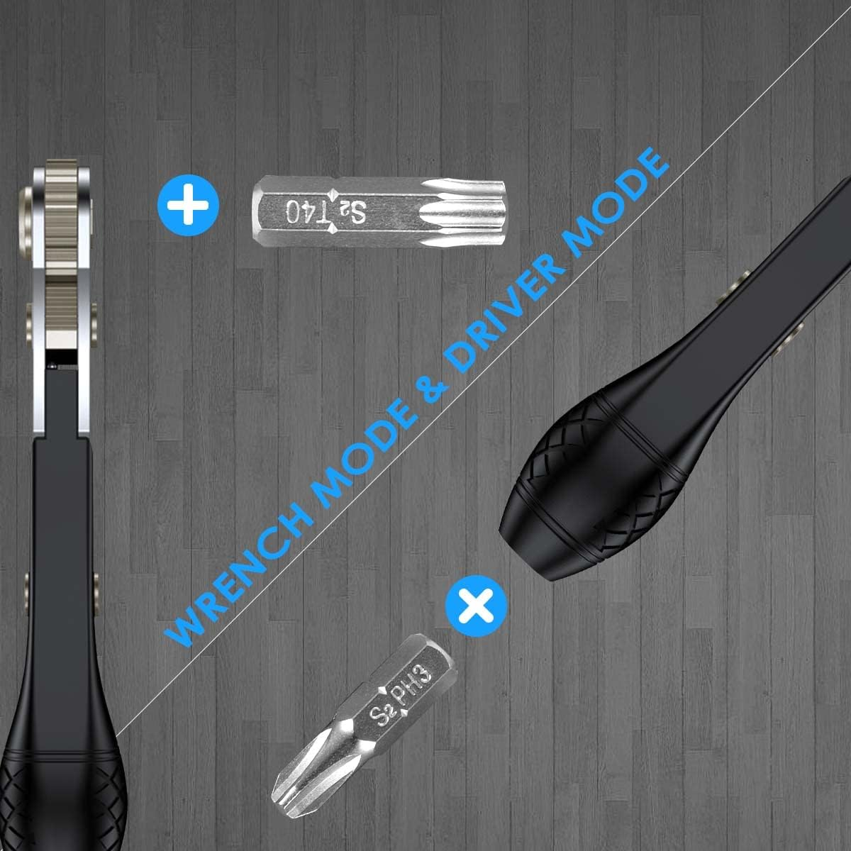 Perfect for Tight Space Operation: The mini ratchet wrench screwdriver is small and light enough for operation at tight space where the traditional screwdrivers might be too long to fit. The comfortable non-slip grip provides excellent handling. Dual-Purpose Ratchet Wrench: The ratchet wrench (4.3" long) is assembled with a 36-tooth reversible ratchet system to ensure smooth ratcheting in both directions. High-quality teeth provide high torque and precise adjustment compared to 12-teeth or 16-teeth ratchet. Simply flip the button to change direction for tightening or loosening the screws. Bit holders on the head and bottom of the wrench are strongly magnetized for holding bits. S2 Steel Bits with Handy Case: The screwdriver bits are made of high-quality S2 steel with hardness at HRC60+/-. CNC machined and magnetized bits ensure precise fit for the screws, reducing wobbling. A compact case is included to hold all the bits and the handle. 36PCS Screwdriver Bits: Phillips (PH0, 2xPH1, 2xPH2, PH3), Pozidriv (PZ0, PZ1, PZ2, PZ3), Square (S1, S2, S3), Hexagon SAE (3/32, 1/8, 5/32, 3/16, 7/32, 1/4), Hexagon Metric (H2.5, H3, H4, H5, H6), Temper-Proof Torx (T8, T9, T10, T15, T20, T25, T30, T40), Slotted (SL3, SL5). Compatible with any 1/4" sockets. Wide Range of Daily Use: Suitable for domestic appliances, furniture, automotive, industrial use, computers, electronics repair, hobbies, toys and crafts, DIY home improvement project, etc. Bits also fit for any 1/4" hex shank screwdriver or extension bit holder for power tools, impact driver. Product Description Ultimate handy EDC tool. 36 Teeth is better 36 teeth ratchet system requires less movement to ratchet, which will provide more viability compared to 12-teeth or 16-teeth ratchet in tight spots. Switch modes With the added slot at the bottom of the wrench. You can easily convert it to a regular screwdriver. Too tight? The mini ratchet wrench is small and compact enough for operation in confined places. Compact & Comfort W offer a low-profile tool box to hold all the bits and the mini wrench. Great EDC gift for your friend and family. Steinwhale 37 Mini Ratchet Screwdriver Bit Set Ratchet Wrench Screwdriver 36 teeth magnetic slots Twin Mode: Wrench and Screwdriver Length: 4.3" 36 PCS Bit Set Phillips PH0 PH1*2 PH2*2 PH3 Pozidrive PZ0 PZ1 PZ2 PZ3 Square SQ1 SQ2 SQ3 Slotted SL3 SL5 Hexagon SAE 3/32 1/8 5/32 3/16 7/32 1/4 Hexagon Metric H2 H2.5 H3 H4 H5 H6 Temper-Proof Torx T8 T9 T10 T15 T20 T25 T27 T30 T40 Specifications Shank: 1/4 inch Hex Bit Length: 1inch Material: S2 Steel Hardness: HRC60+/- Box Size: 4.9’’x3.3’’x1.1’’ Weight: 10.6 oz