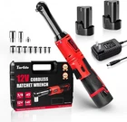 3/8" Electric Ratchet Wrench, 4" Extended 40 Ft-Lbs 400 RPM 12V Cordless Battery Powered Ratchet Wrench Set with LED Light, Including 2 Batteries, 11 Sockets and Fast Charge Description Item model number 3/8" Cordless Ratchet Wrench Battery Cell Type Lithium Ion Style 3/8“ Electric Wrench Batteries Included? Yes Item Torque 40 Foot Pounds Finish Powder Coated Material Plastic, Metal Batteries 2 Lithium Ion batteries required. (included) Item Length 4 Inches Finish Type Powder Coated Item Package Quantity 1 Batteries Required? Yes Item Weight 5.39 pounds Head Style Hex Color Red 4" Extended Ratchet Wrench Operation Mode Battery Voltage 12 Volts Included Components 3/8" extended cordless electric ratchet wrench, 2 rechargeable batteries, 1 carrying bag, 1 fast charge, 11 sockets Size 3/8" 【4" Extended Neck】 Extended cordless ratchet makes it easy to reach any tight spots to lose or tight nuts casually, which makes you without any concern of knuckle busting 【More Time-saving & Wider Application】 Tarlido went through thousands of tests to make the torque finally reach 40FT-LB, from small DlY to large mechanical repairs, Tarlido electric ratchet is perfectly suited for all the basic needs in the home. Plus the 400RPM speed means the Tarlido wrench will get the job done in half the time 【Built-in LED & Power Indicator】 The extended neck combined with the built-in LED light makes it easy to work in dimly lit, confined spaces. A power indicator next to the switch provides a quick overview of the current battery balance to avoid downtime during work 【Safety Lock for Secure Use】 The motor can only be activated by switching on the safety lock, this safety setting can effectively prevent children from accidentally touching the switch or squeezing the switch when the wrench is placed in a narrow place 【What You'll Get】 1 x Extended Ratchet Wrench, 11 sockets, 1 x Fast Charger, 1 xCarrying Bag