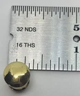 Polished Turned, Solid Brass BOOKCASE KNOB, slightly domed top. 3/8" Diameter Top (bottom foot is a hair smaller but still bigger than 5/16ths) 7/16" Projection Sold Individually, each knob comes with one front and one rear mounting screw for your choice of installation. Check our store for other similar sized knobs in brass and nickel. B-0309 (1221-PB)